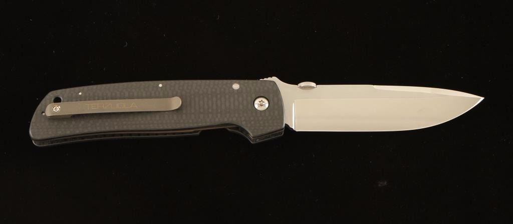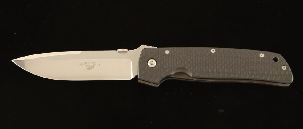ATCF, Advanced Technology Combat Folder. Carbon fiber handle with a plain edge. "Terzuola" and logo etched on blade.