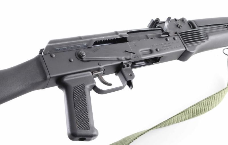 Romanian semiautomatic rifle imported by CAI, St Albans VT. AK-47/AKM style action. Features matte black finish, black polymer furniture, stamped receiver, 16" barrel, muzzle brake threaded unto front sight base, protected post front sight, tangent rear sight, dovetail scope base on left side of receiver, manual safety, sling swivels, bayonet lug, cleaning rod, US made pistol grip & buttstock, storage trap with cleaning kit in butt. Bore is excellent condition, appears hard chrome lined. Retains 95% finish with scuffs & scratches. Polymer furniture is very good. Includes green nylon web sling. No magazine provided. Condition is NRA Excellent - like new *** Modern Firearm ***