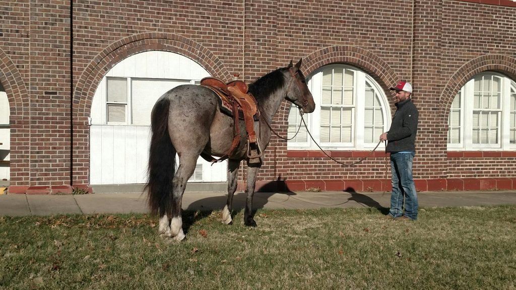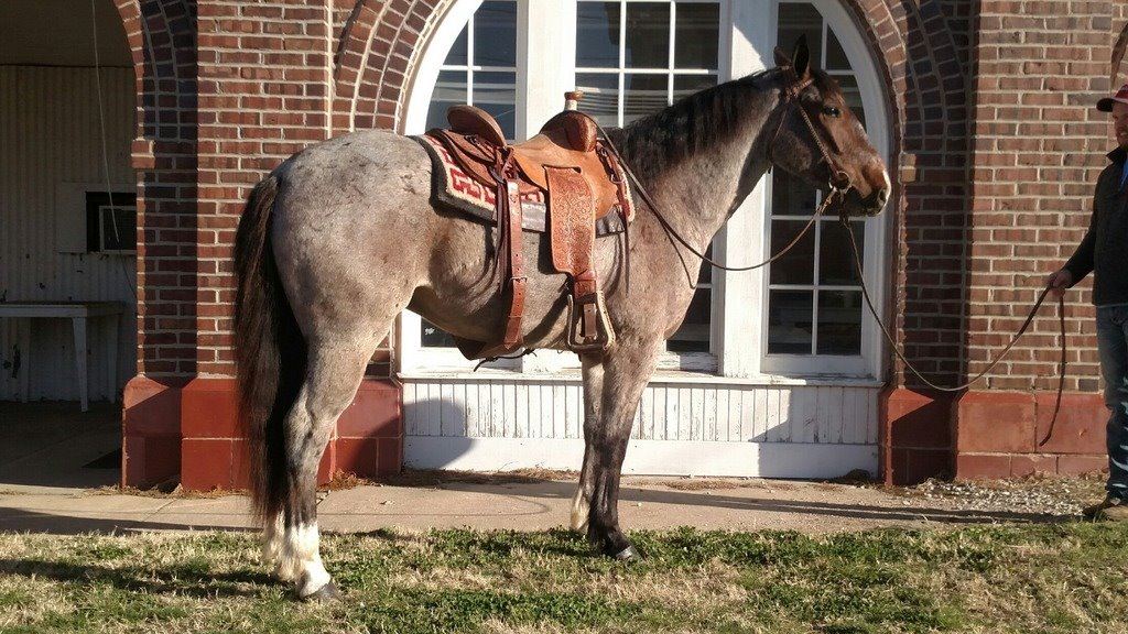 4 year old Bay Roan Percheron Quarter Cross Gelding, 15.2 hands, had lots of riding time, nice lope, quiet and very gentle. Been ridden in rough country. Nice, level headed.
