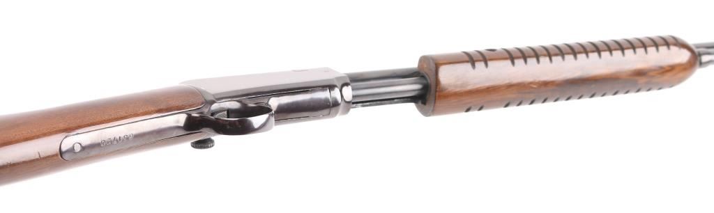 GOOD: Some minor replacement parts; metal smoothly rusted or lightly pitted in places, cleaned or re-blued; principal letters, numerals and design on metal legible; wood refinished, scratched bruised or minor cracks repaired; in good working order.