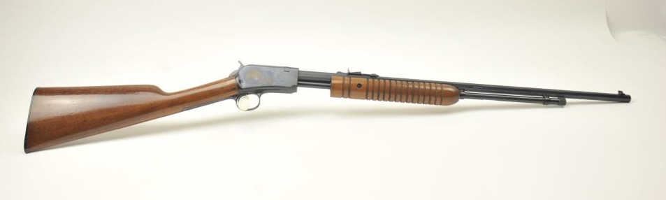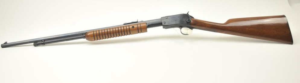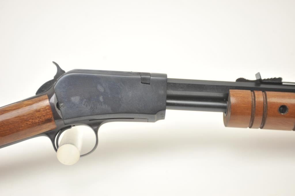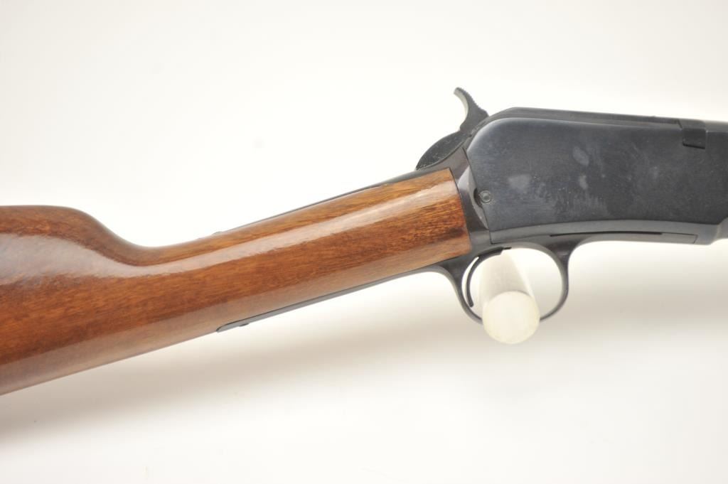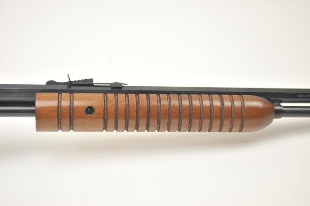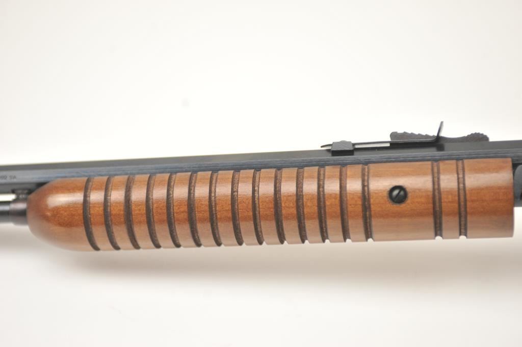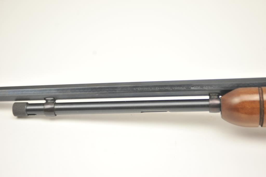 Rossi Model 62 SA pump rifle, .22 S, L, or LR caliber, Serial #6250238. The rifle is in nearly excellent overall condition with a 23” octagon barrel with a ½ magazine. The rifle retains approximately 95% of the blue finish with some edge wear and light scratches. The smooth wood stock is in very good condition showing little use. The bore is good and the action works well. Est.: $150-$300. (Modern).