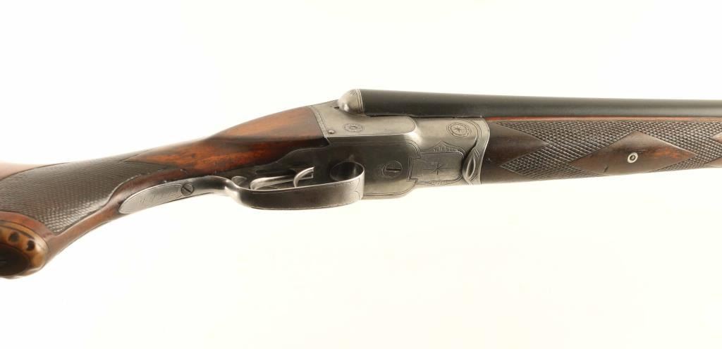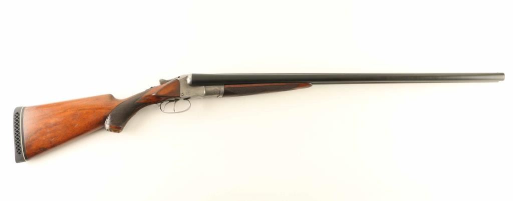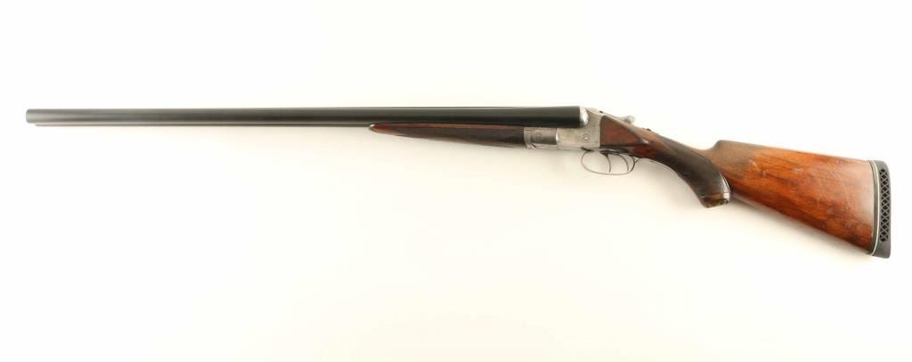 Shotgun, Side-by-side. Break-top. 28"barrels. Double triggers. Checkered wood forearm, and checkered pistol grip stock. Thumb safety on tang. Pachmayr white-line rubber recoil pad. Bores appear excellent/bright. Action locks up tight. Wood is very good, with scratches/dings. Barrels have been re-blued, making the markings un-readable. No case-hardening left on the receiver. Well used, but not abused. A good condition work gun from the early 20th century. NRA Condition-Good, plus. C&R Firearm.