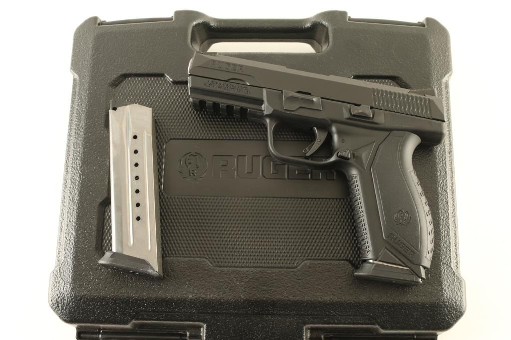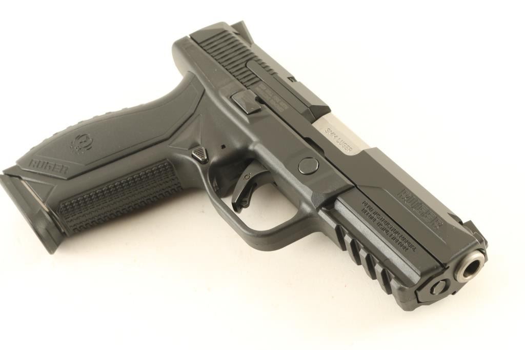 Semiautomatic pistol features matte black finish, black polymer frame with accessory rail, 4.1" barrel, 3 dot sights in dovetails, interchangeable backstrap inserts, ambidextrous slide stop lever & frame mounted manual safety, manual safety tab built into trigger, single action striker fired. Condition is like new with few signs of handling. Includes (2) magazines, (2) different backstrap inserts, manual, factory hard plastic case. Condition is NRA Excellent - like new *** Modern Firearm ***