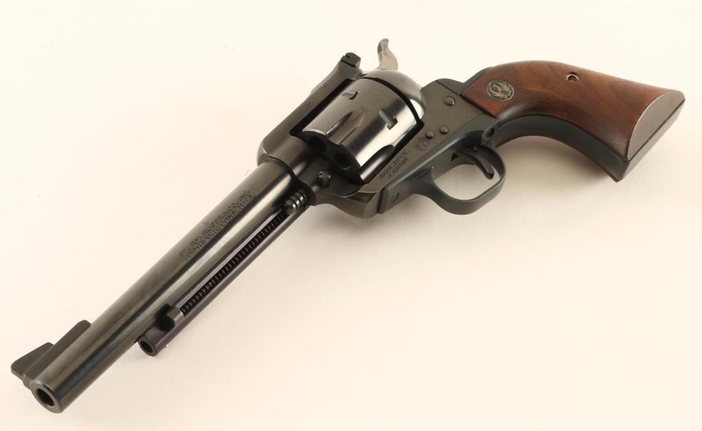 Vintage American made six-shot single action revolver chambered in .357 Magnum, circa 1969. Features a blued finish, 6 1/2" barrel, raised ramp front sight, adjustable rear window sight, ejector rod, fluted cylinder, flat top three-screw frame, smooth trigger, serrated hammer spur, black anodized aluminum alloy grip frame and two-piece smooth walnut grips with Ruger medallions. Revolver exhibits approximately 99% of it's original blued finish showing a very faint drag line on the cylinder and minimal handing marks. The grip frame shows some very minor blemishes and a couple fine scratches. Action is smooth with tight lock-up, bore is pristine and wood grips are fine. Condition is excellent. ***Modern Firearm***
