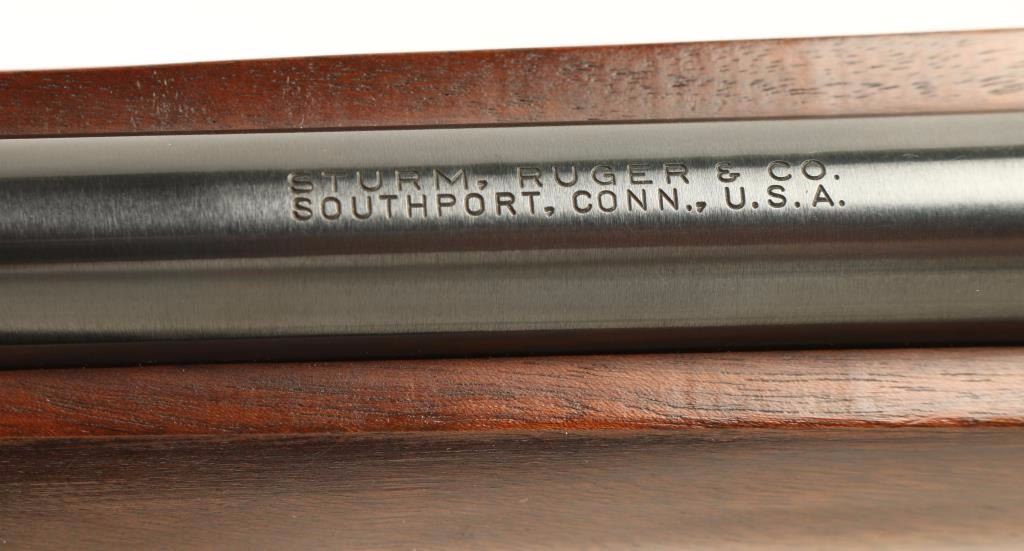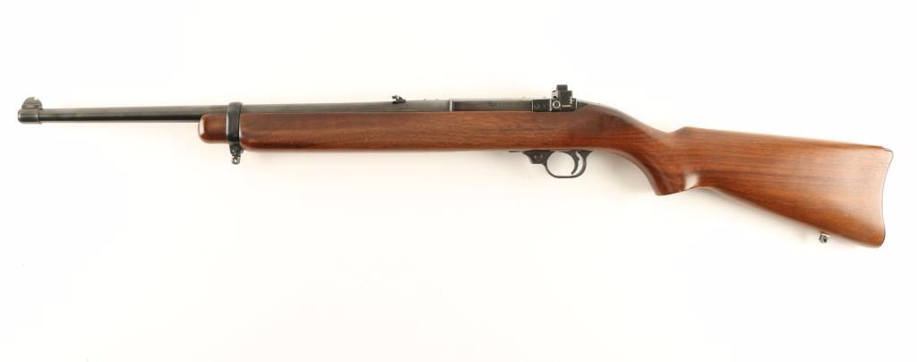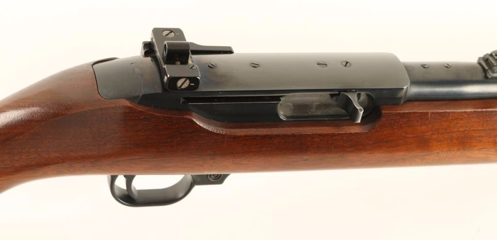 Early Tube-fed semi automatic rifle chambered in .44 Magnum, circa 1962. Features a blued finish, 18.5" tapered barrel, blade front sight with white insert, adjustable flip-up rear sight, Williams side mounted pep sight,1/2 tube magazine, push button safety, smooth trigger, swivel studs, and smooth wood pistol grip stock with metal carbine buttplate. Rifle retains approximately 96% original finish with very little wear. Action is solid, bore is excellent, and wood stock is fine with minimal imperfections. Condition is excellent. ***Modern Firearm*** ***C&R Firearm***
