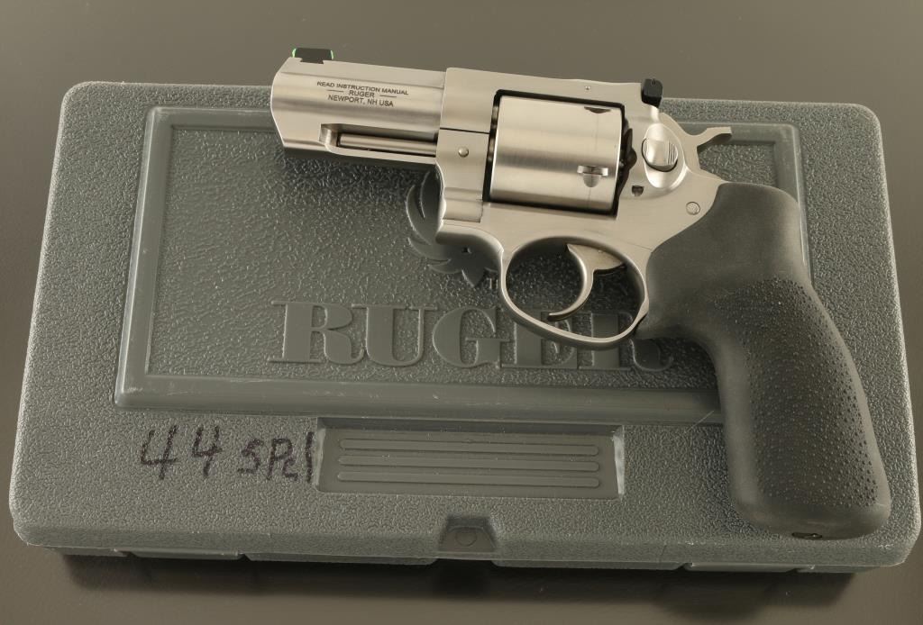 Double/single action revolver features stainless steel construction, pebble grain black rubber grip, 3" barrel, adjustable sights, 5 shot unfluted cylinder. Bore & charge holes are excellent. Overall condition is like new with few signs of handling. Smooth action & tight lock-up. Includes factory gray plastic box & manual. Condition is NRA Excellent - like new *** Modern Firearm ***