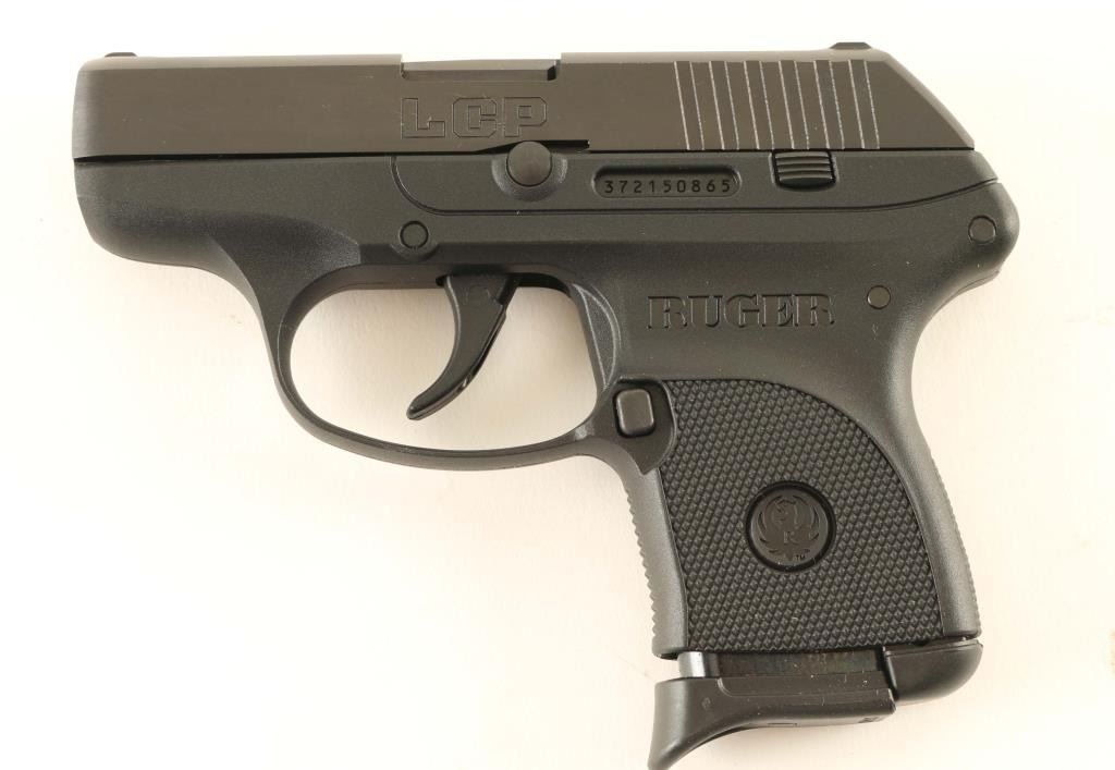 Semiautomatic pistol features approx 2.75" barrel, fixed sights, double action only trigger. All black finish; polymer frame. Bore is excellent condition. Overall external condition is like new, with little evidence of handling. Includes original factory cardboard box, manual, cable lock, one magazine with pinky rest, replacement "flat" mag base, Ruger marked black nylon/neoprene pocket "sleeve" holster. Condition is NRA excellent - Like New *** Modern Firearm ***