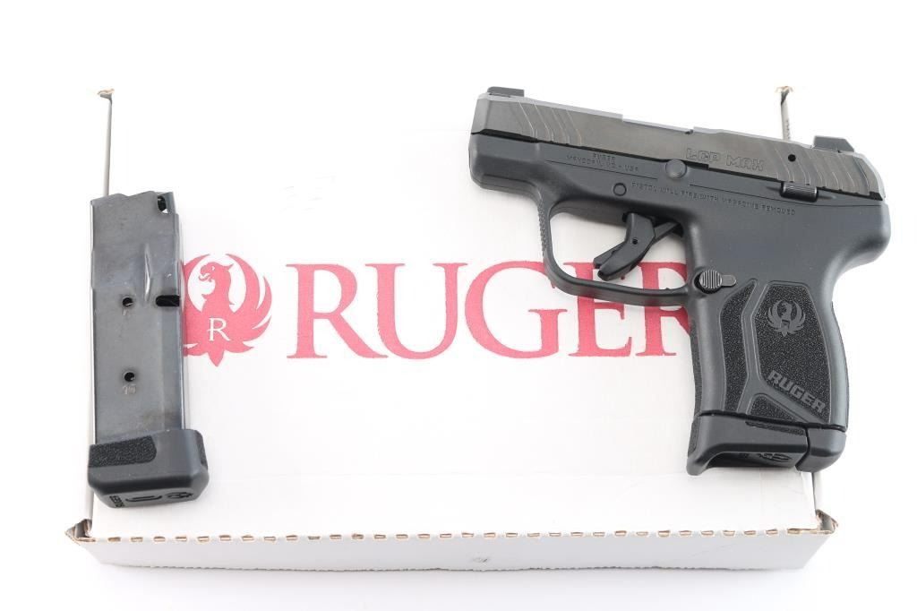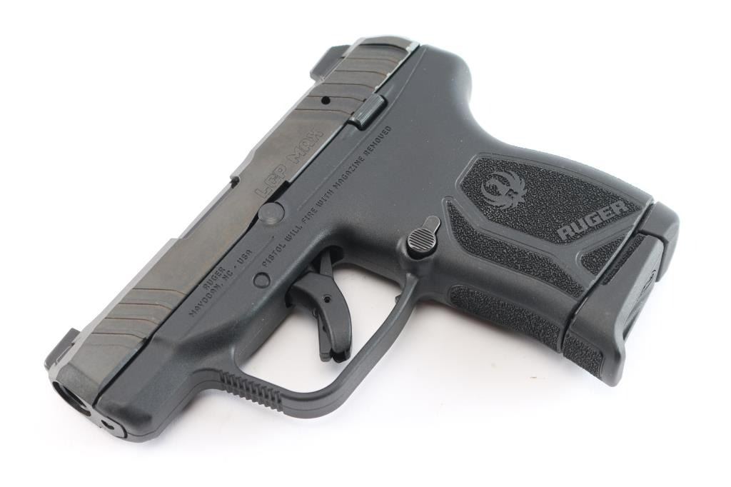 Semi-automatic pocket pistol chambered for .380 ACP. Manufactured in Mayodan, NC. 2-3/4" barrel, black oxide finished slide with serrations front and back. Tritium dot front sight and serrated U-notch rear sight. Black polymer frame with textured grip with Ruger logo, trigger safety, slide release, serrated front trigger guard and reversible push button mag release. Bore is excellent/bright. Retains 99% finish with little to no scratches or marks. Comes with original box, manual, one 10rd metal magazine (2 total), magazine speed loader.