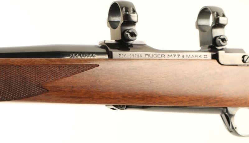 American made bolt-action sporting rifle chambered in .204 Ruger, circa 2004. Features a blued finish, 24" tapered barrel with no provisions for sights, installed scope rings, smooth trigger, manual three-position safety, stainless steel bolt, internal box magazine with hinged floorplate and checkered walnut pistol grip shoulder stock with swivel studs, black grip cap & factory recoil pad. Includes the original factory cardboard box with documents and lock. Rifle exhibits little to no visible wear with the receiver turned plum. Action is smooth, bore is pristine and wood stock is fine. Condition is like NRA new in box. ***Modern Firearm***