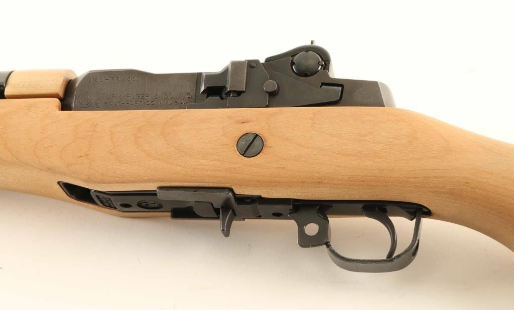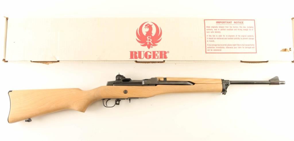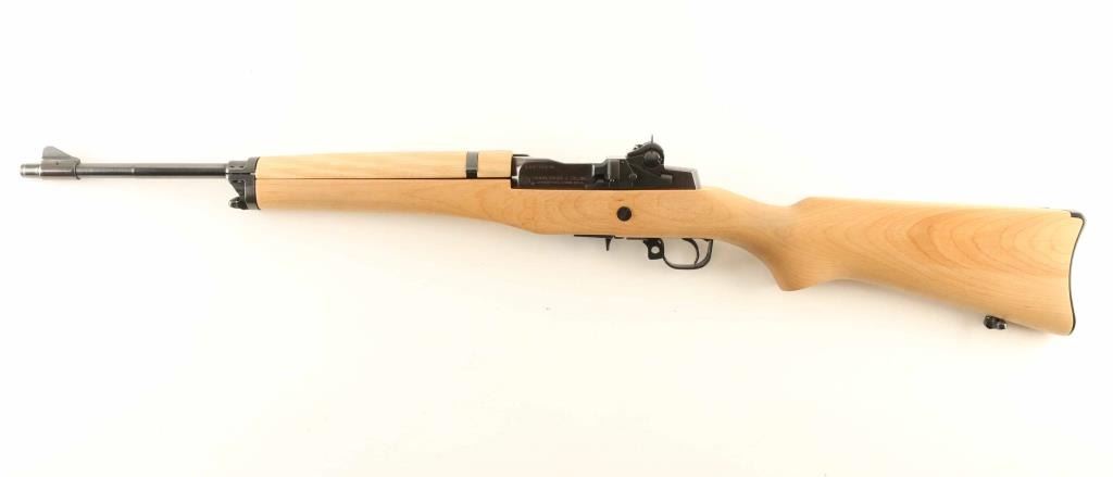 Semiautomatic rifle features blued finish, blonde colored wood stock & handguard, 18" barrel, manual safety, adjustable sights, sling swivels. Bore is excellent. Overall condition is like new with few signs of use. Includes total of three magazines (one each 5, 20, 30 round capacity), factory cardboard box, manual. Condition is NRA Excellent - Like New *** Modern Firearm ***