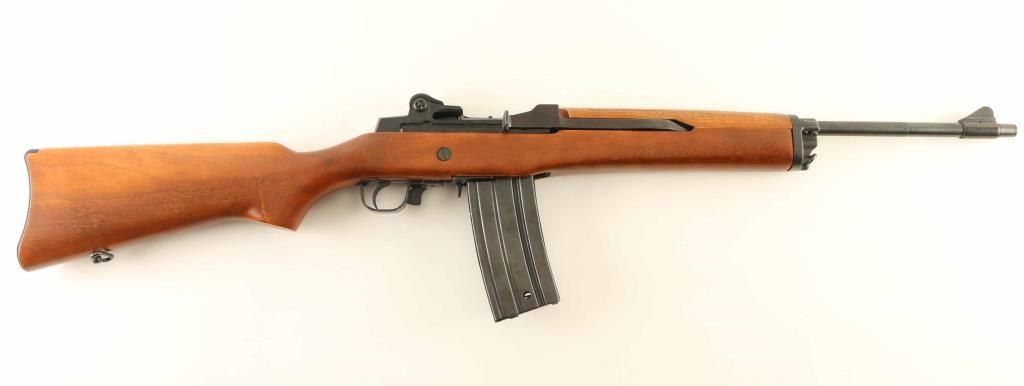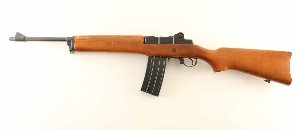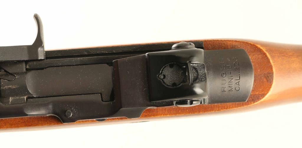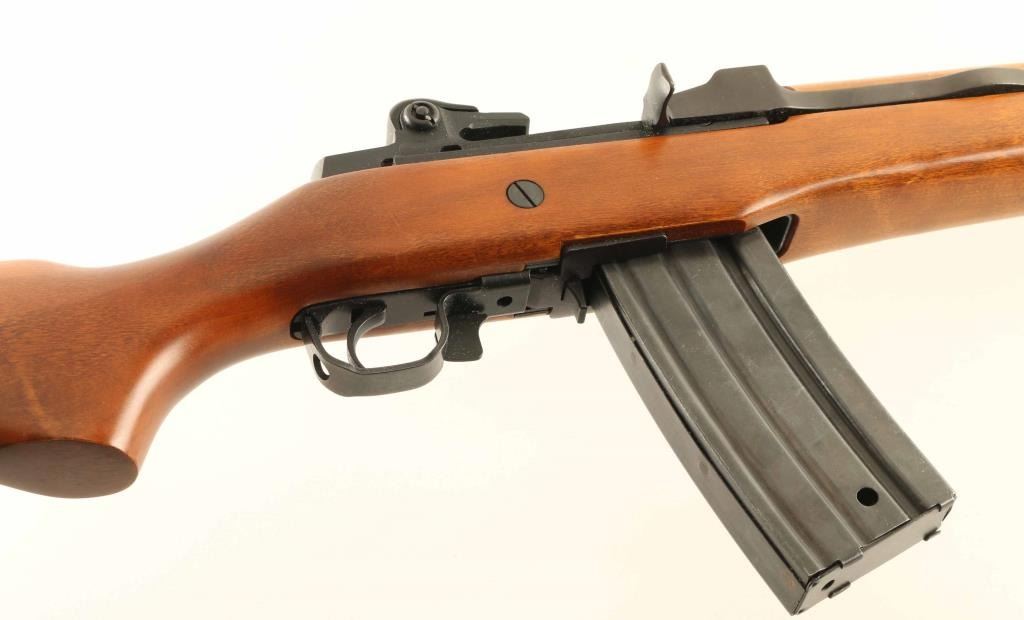 American made semi-automatic sporting rifle built along the lines of a scaled-down M14 and chambered in .223 Remington, manufactured circa 1978. Features a blued finish, 18" barrel, large blade front sight, adjustable rear aperture sight, smooth trigger, investment cast receiver, NO magazine, manual safety, sling swivels, smooth wood handguard, and pistol grip shoulder stock with synthetic carbine buttplate. Rifle exhibits approximately 95% of it's original finish. Action is smooth, bore is good and wood stocks are fine with one small but noticeable dent in left side of forend. Condition is NRA very good. ***Modern Firearm***