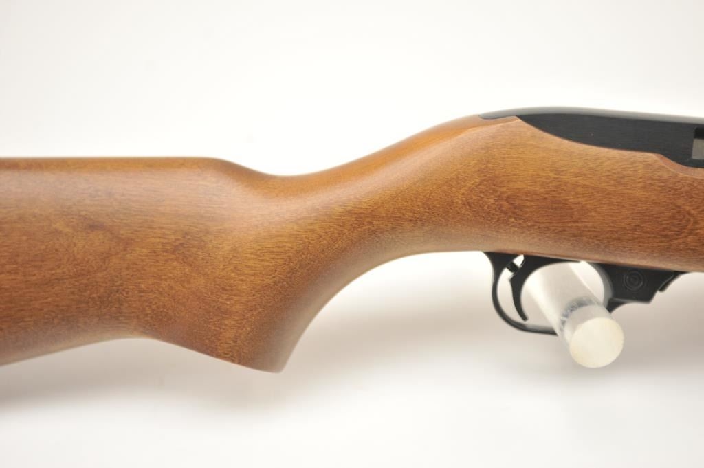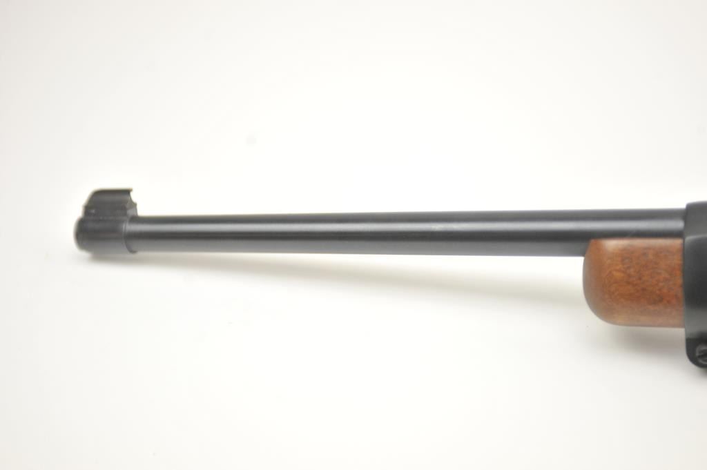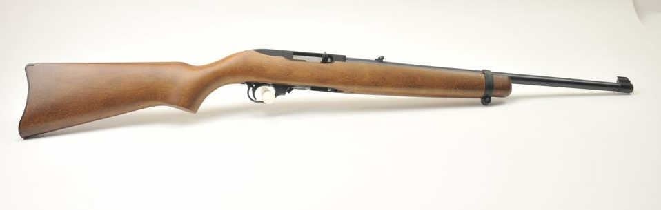 Ruger Model 10-22 semi-automatic carbine, .22 Long Rifle caliber, Serial #231-99602. The carbine is in nearly excellent condition with an 18” barrel with a ramped blade front and folding rear sights. The carbine retainsapproximately 98-99% of the blue finish with only storage marks. The smooth wood stock is in excellent condition showing little use. The bore is very good, the action is crisp and the markings are sharp on this lightlyused Ruger. The lot includes one correct magazine. Est.: $200-$400. (Modern).