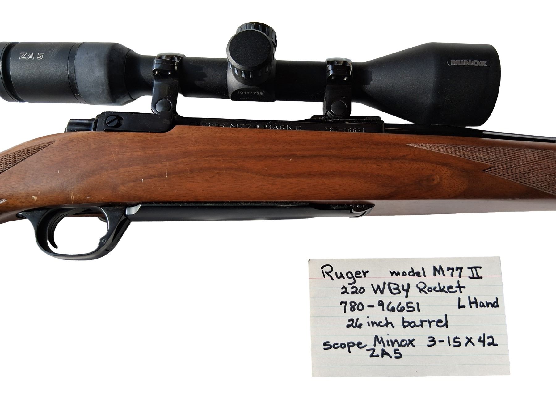 Special Note on Caliber: The .220 WBY Rocket is not a standard factory caliber. This suggests the rifle was either custom-built, rebarreled, or re-chambered by a gunsmith for this specific wildcat/proprietary Weatherby-based cartridge. This customization makes it a unique piece. Equipted with a Minox 3-15X42 ZA5 Scope.