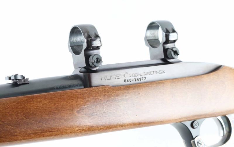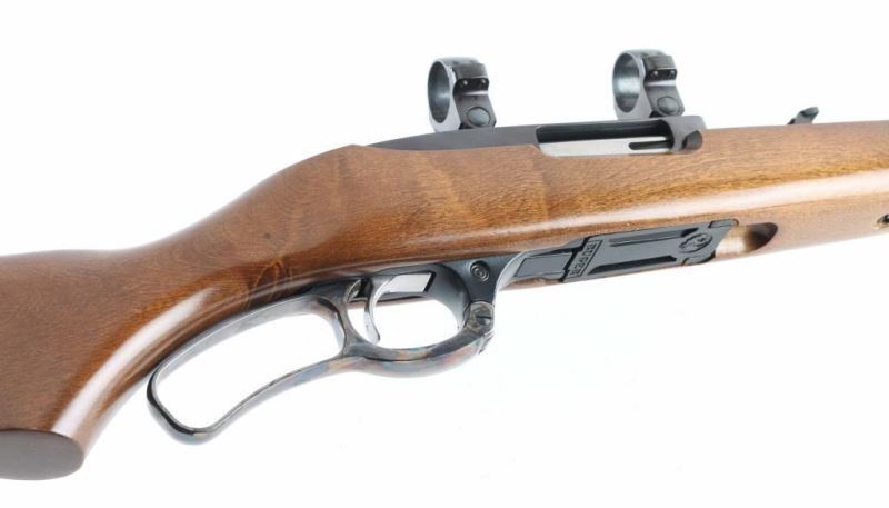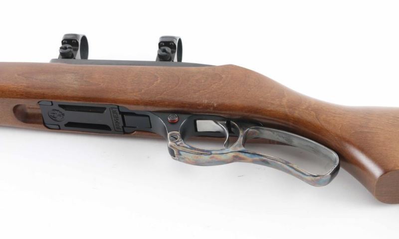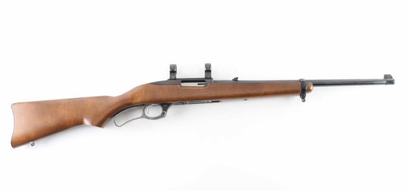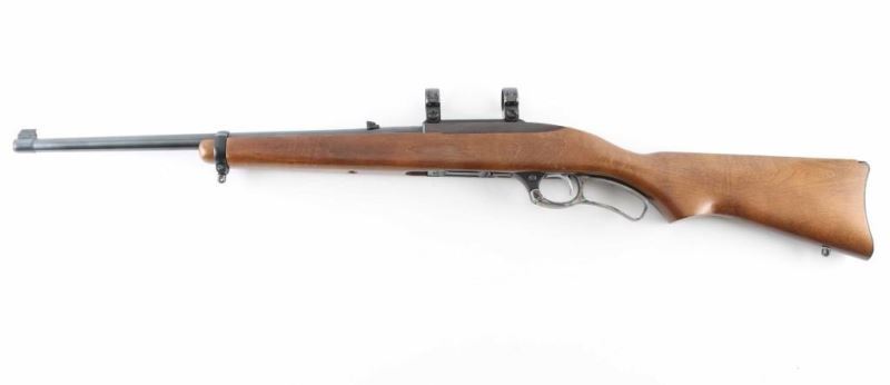 This is a lever action rifle chambered in .44 Magnum,Circa 1999. It comes with a four round rotary magazine, swivel studs and scope rings. This rifle features an integral scope base machined into the receiver. Blued barrel and receiver are in very good condition showing little to no visible wear. The stock is basic but with no real dings or rubbing marks. Case hardened lever. NRA Excellent Modern Firearm