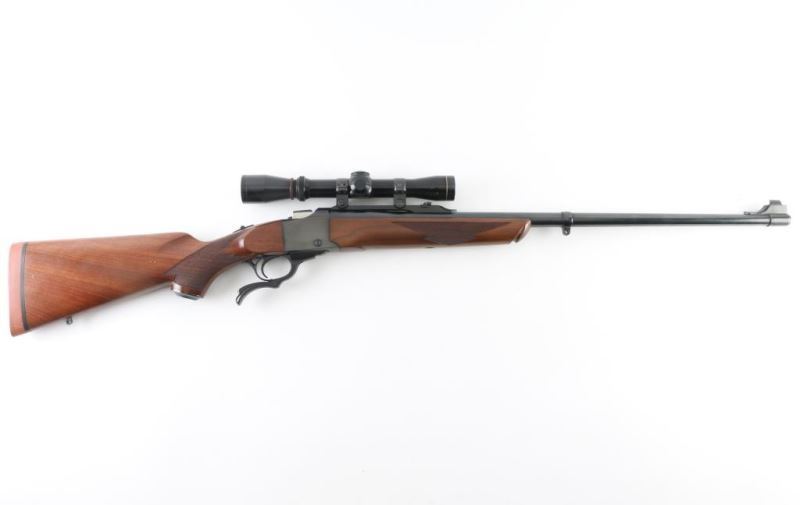 American made single shot, Falling-Block rifle. Introduced in 1966, based on John Farquharson's falling-block design that was patented in Scotland in 1872. Keeping with the Scottish theme the stock has an Alexander Henry forend. Blued finish. Checkered, pistol grip walnut stock with checkering at the wrist and forearm. Tang safety. Sling swivel stud on butt stock with band on 26" barrel for sling attachment. Serrated trigger. black plastic grip cap with Ruger medallion and Pachmayr "Old English" recoil pad. Falling block action is smooth/tight. bore appears good but slightly dirty. Wood is near excellent with a few very minor scratches/dings. Blued finish is excellent. It includes a Leupold Vari-X II 2-7 scope. NRA Condition- Very Good+