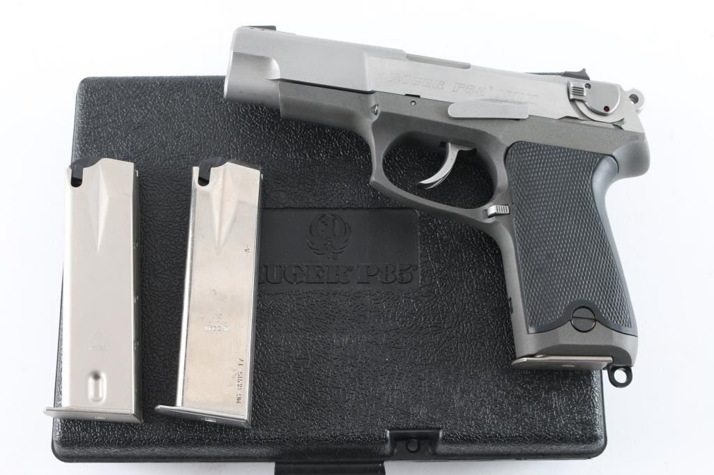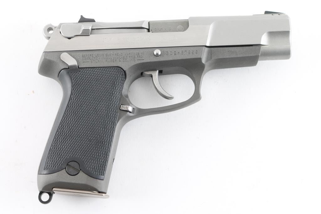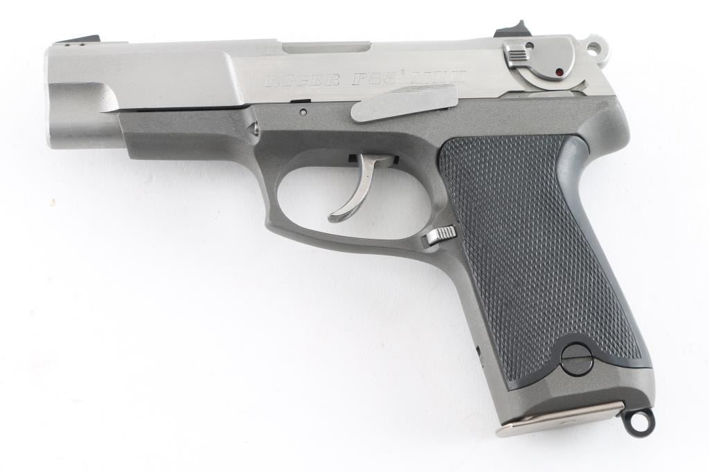 Double action semi auto pistol with 4-1/2" barrel. Alloy frame, Stainless steel slide, checkered black synthetic grip panels, 3-dot sights, pinned front, and windage adjustable rear, ambidextrous decocking/safety lever and magazine release and lanyard ring. serrated hammer, smooth trigger. 15 rd magazine. Bore appears excellent, needs cleaning. Action is crisp/tight. Metal finish is very good with some minor scratches. Comes in original factory hard case with manual, and two spare 15 rd magazines (3) Total. NRA Condition-Near Excellent. Modern Firearm