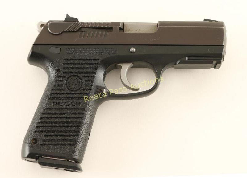 Double-action semi-automatic pistol chambered in 9x19mm. Features a blued slide, 3.9" barrel, pinned patridge front sight, drift adjustable rear window sight, ambidextrous decocker/safety, smooth trigger, serrated hammer spur, ambidextrous push button magazine release, 12 round factory magazine, and black polymer frame with integral accessory rail & grooved grip. Pistol exhibits approximately 90% of it's original finish which has turned plum and shows light edge wear and minor handling marks. Action is smooth, bore is pristine and polymer is near fine. Condition is very good. ***Modern Firearm***