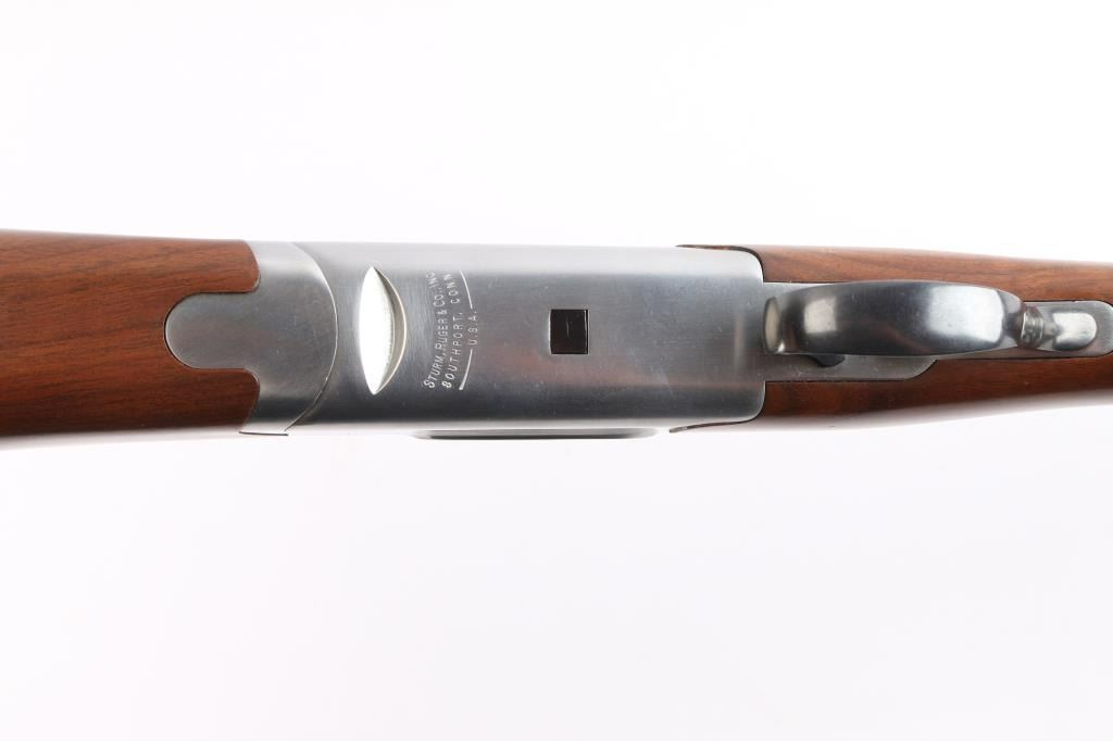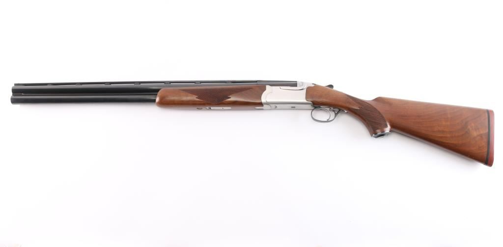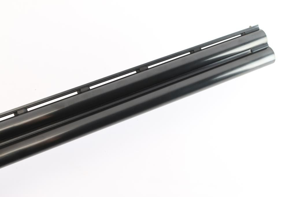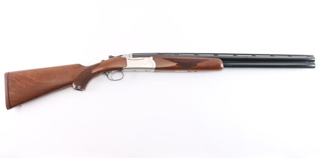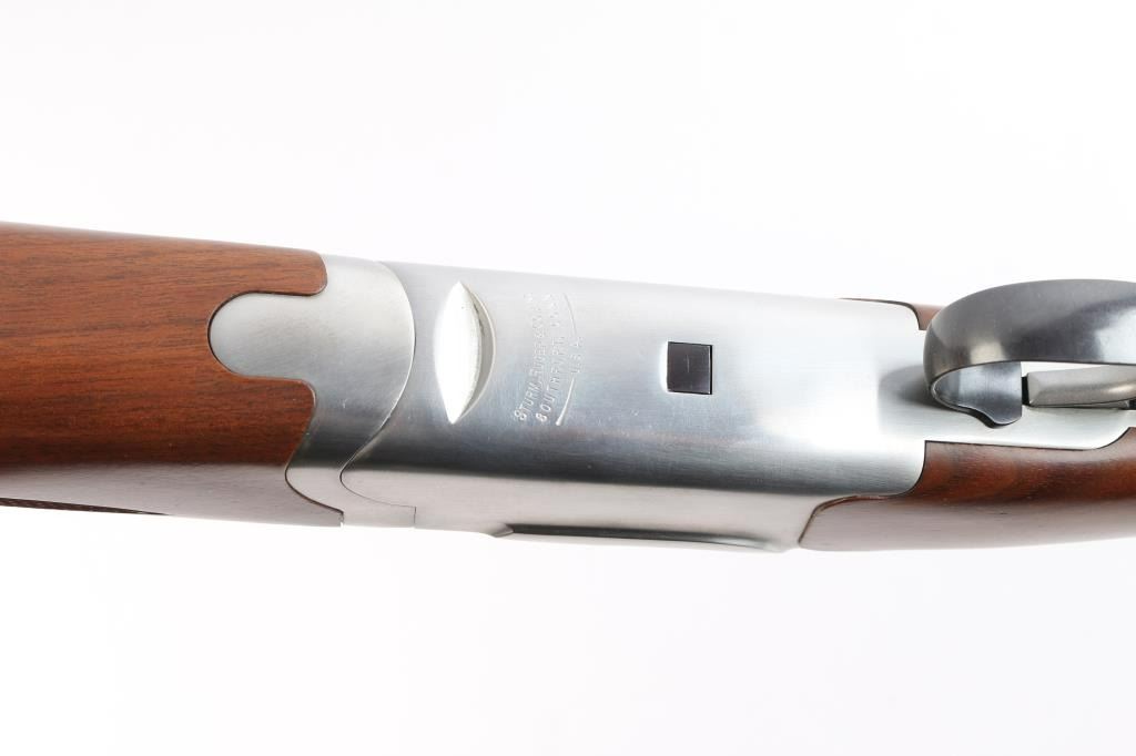Over-Under shotgun features blued 26" vent rib barrels, stainless steel receiver, checkered wood forend, curved grip stock with checkered wrist panels, solid rubber factory butt pad, steel grip cap with Ruger medallion, single trigger, tang safety selects barrel, selective auto ejection, brass front bead. Accepts up to 3" shells. Choke tubes installed (Mod over IM). Barrels and other blued parts retain about 97% finish with some minor scratches. Bores are excellent/bright. Action is near excellent condition with small scratches. Wood is excellent. Approx stock measurements: 14 1/4" Length of Pull, 1-3/4" Drop at Comb, 2-5/8" Drop at Heel. Manufactured 1991.
