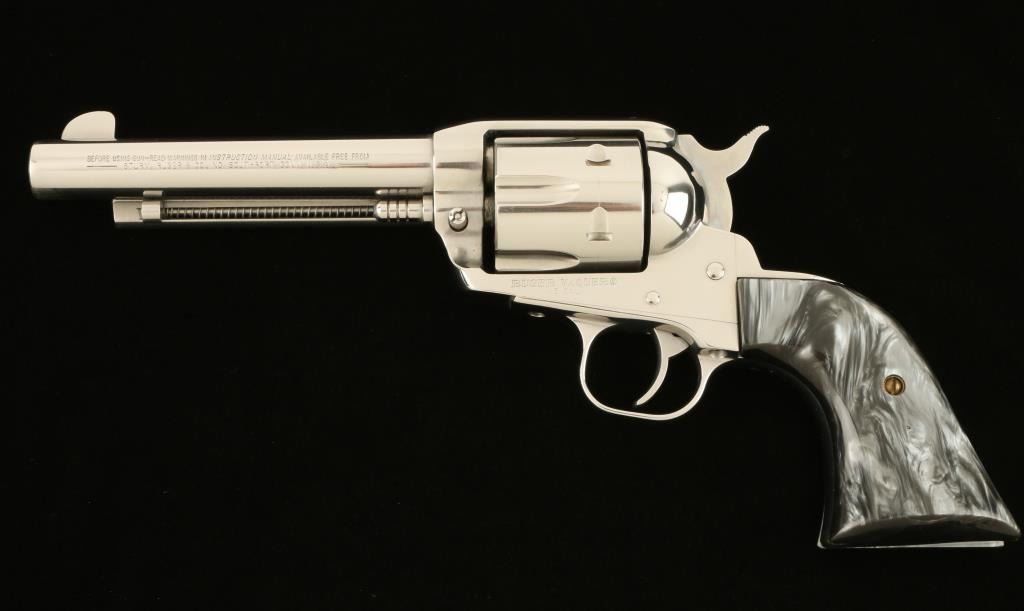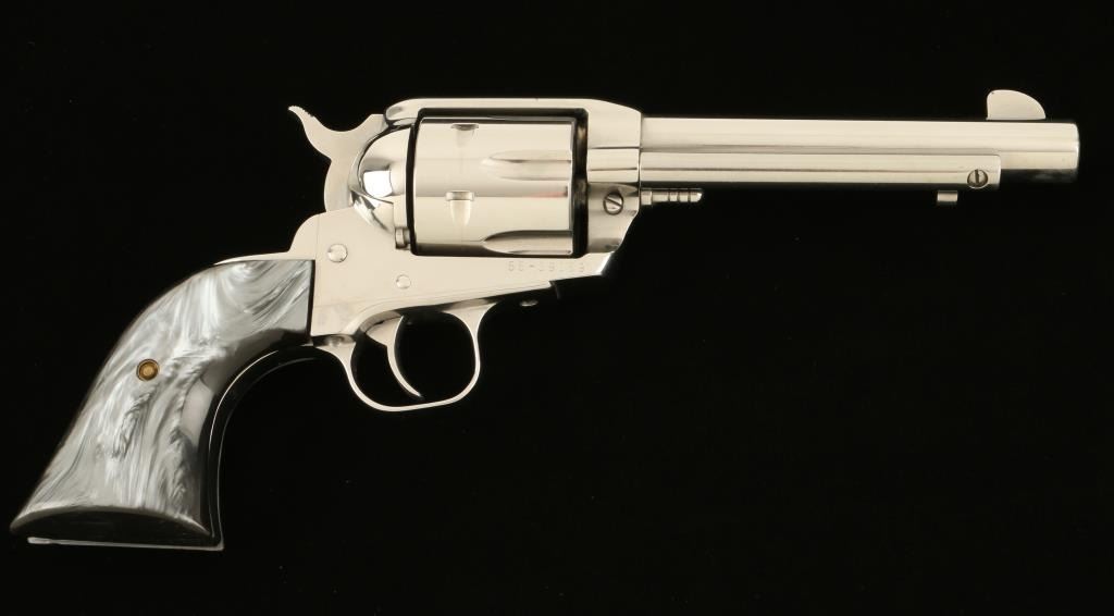 Ruger Vaquero SA revolver, .45 cal., 5 ½” barrel, plastic grips, nickel finish, S/N 55-39069. This