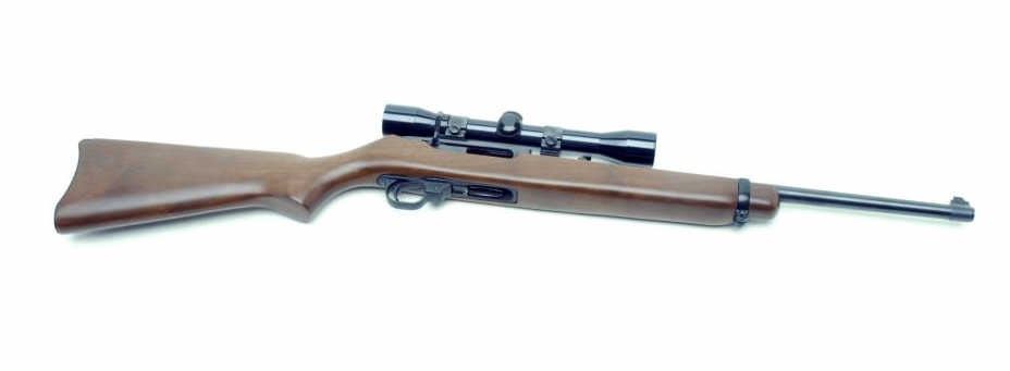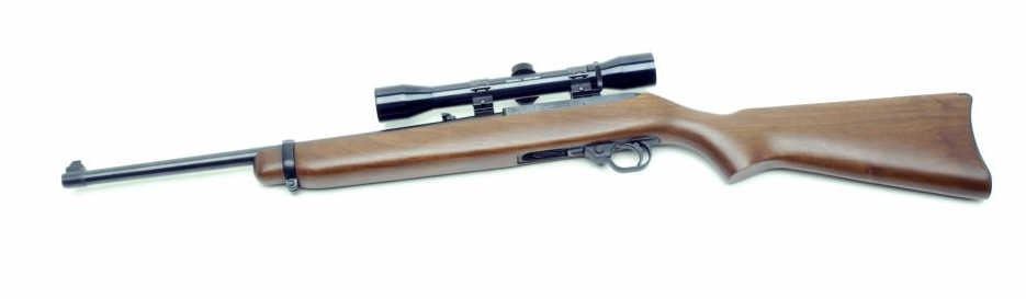 Ruger semi-automatic carbine, .44 Magnum caliber, 19” barrel, S/N 102-95834, blued finish, wood stock, mounted with a Bushnell Sportview scope displaying fine optics. This carbine is in overall like new condition. (Modern/PPT).Est.: $300-$600.