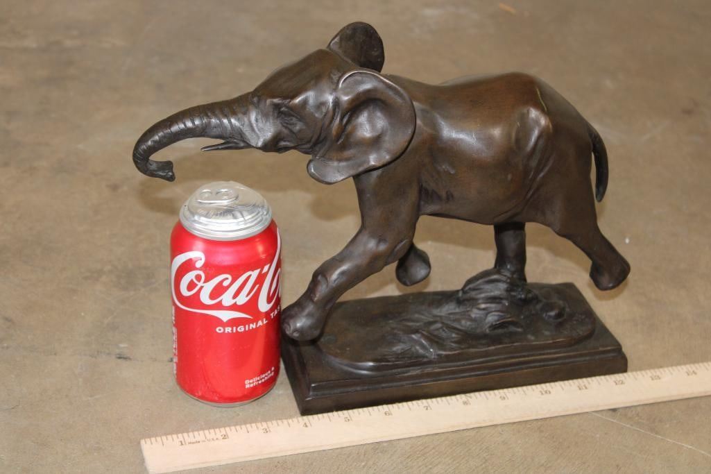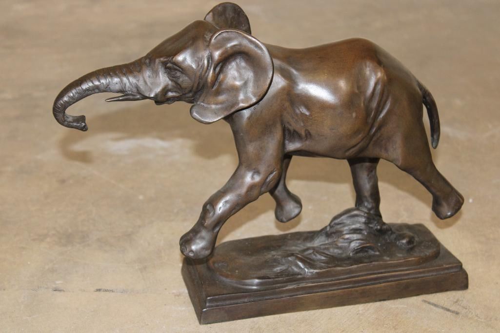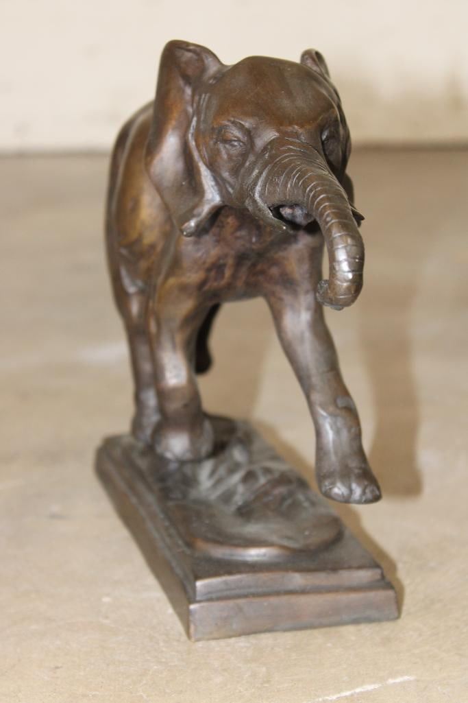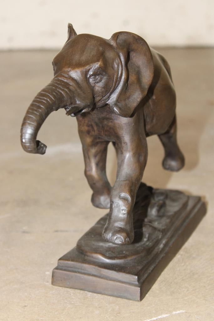 Running ELEPHANT Bronze Sculpture after and signed "Barye". It measures 11.5" Long x 3.5" Wide x 9" Tall. The Total Weight 7 lbs 5 oz. COLLECTIBLE BRONZE SCULPTURES