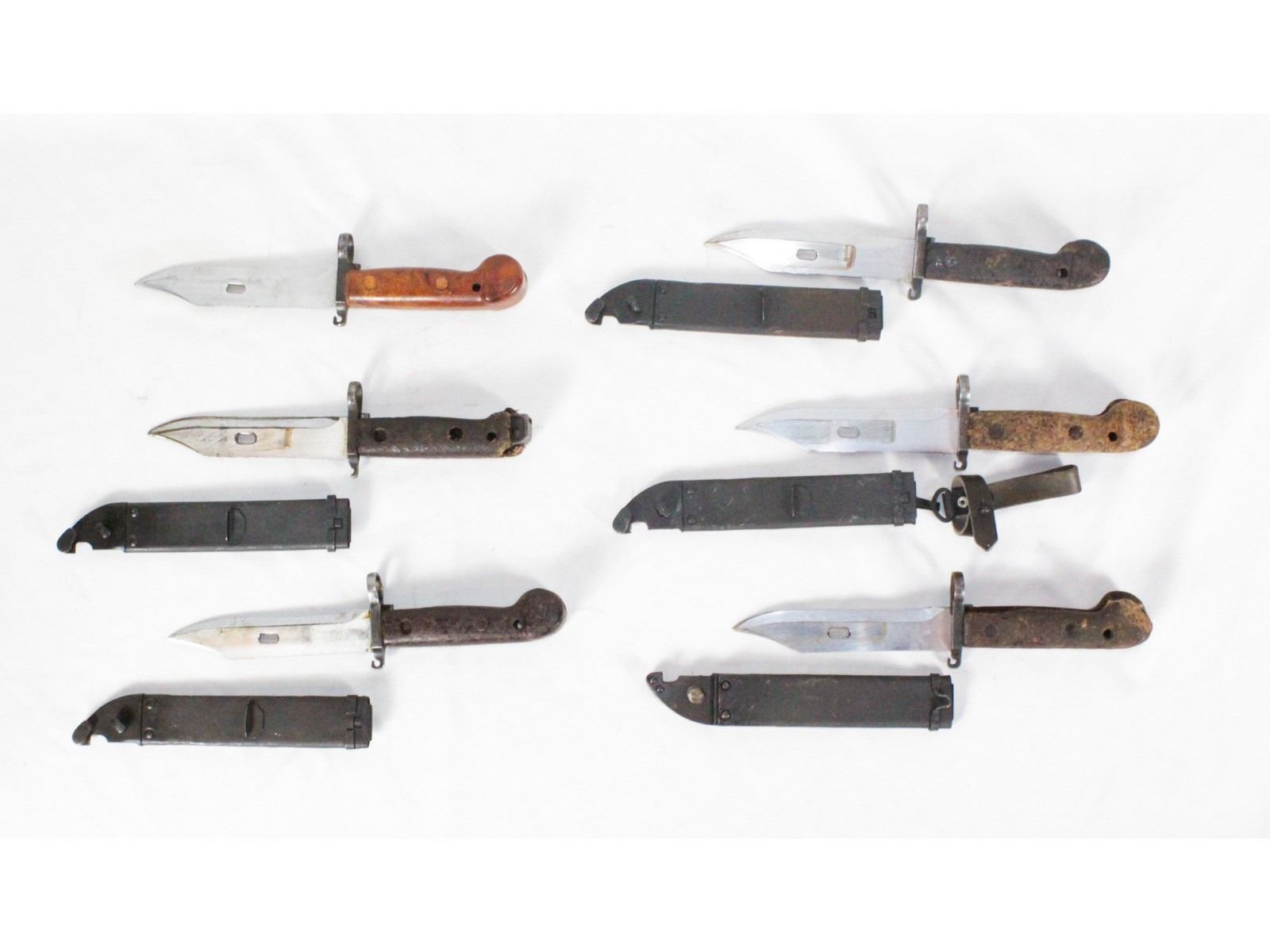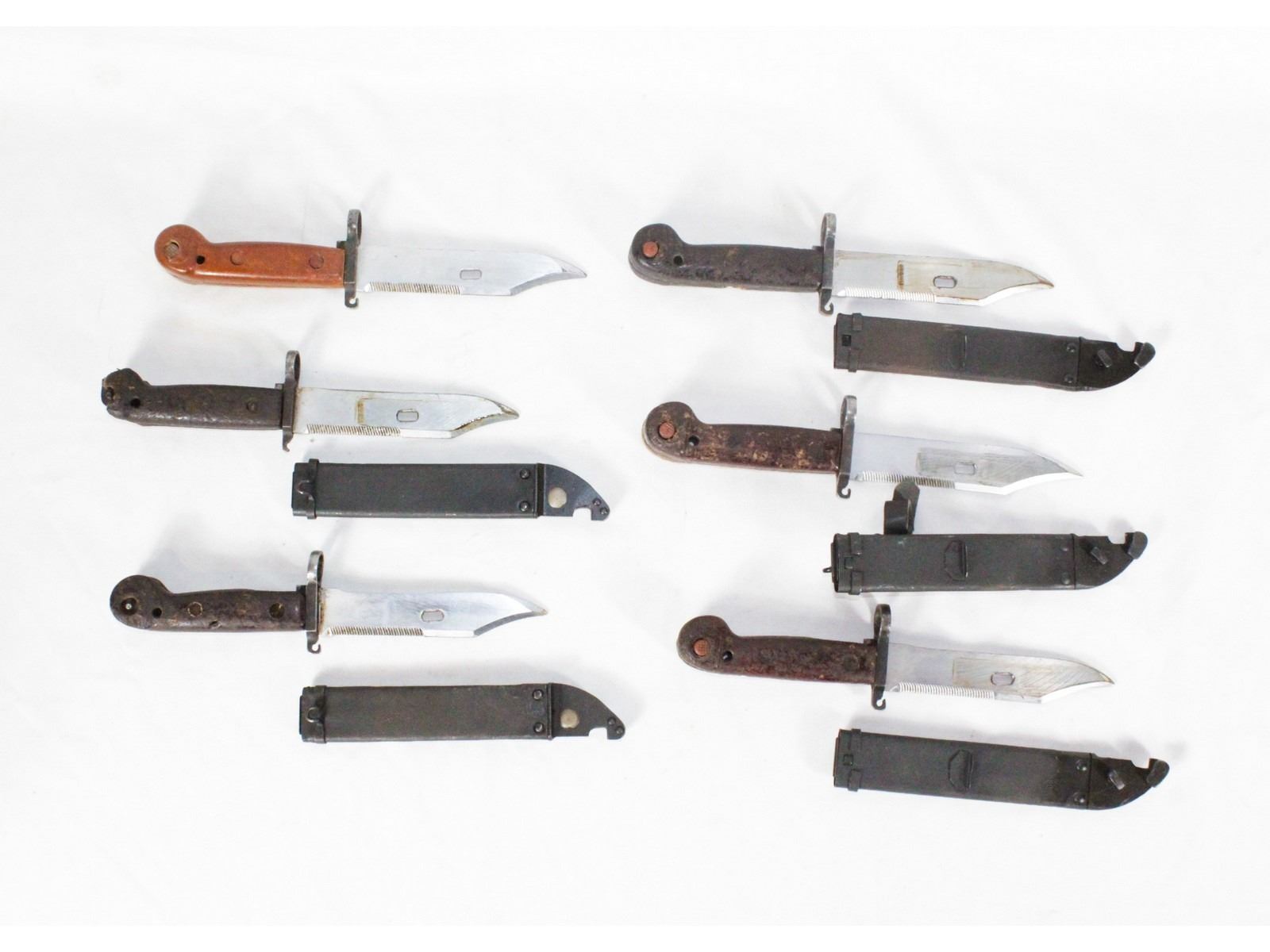 Dragunof rifle. 5 with scabbards, 1 without. All with heavily worn grips. See photos