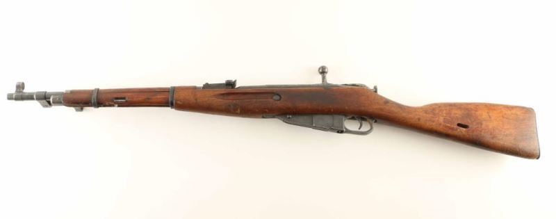 Russian military bolt action rifle manufactured circa 1945, imported by CAI, Georgia VT. Features 20" barrel, post front sight inside protective ring, tangent style rear sight, manual safety, straight bolt handle, sling slots, folding spike bayonet. Cleaning rod is absent. Bore is fair condition, dark with strong rifling. Retains 80% dark blued finish with small areas of light patina and pitting throughout. Bolt assembly is bare metal with pitting and patina brown color is small patches throughout. Wood is good serviceable condition, with scratches & dents, finish loss in some areas. Serial number is importer applied on receiver. Numbered parts do not match. Condition is NRA Good *** C&R Firearm ***