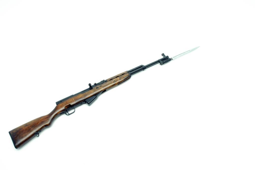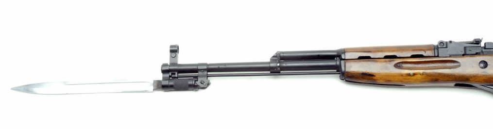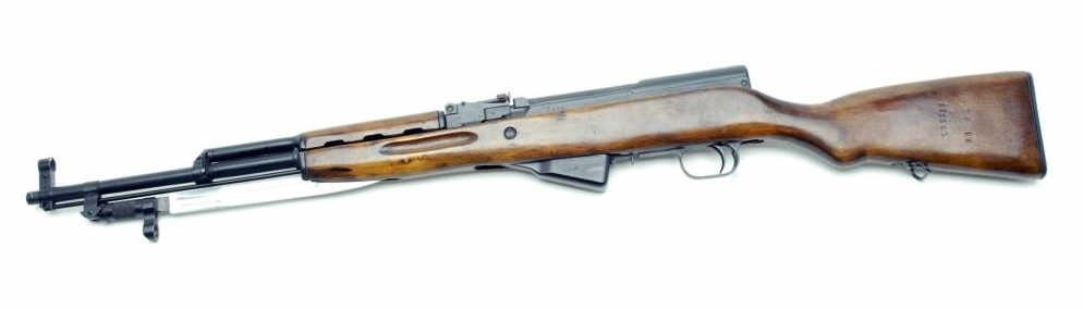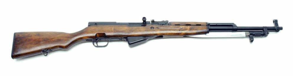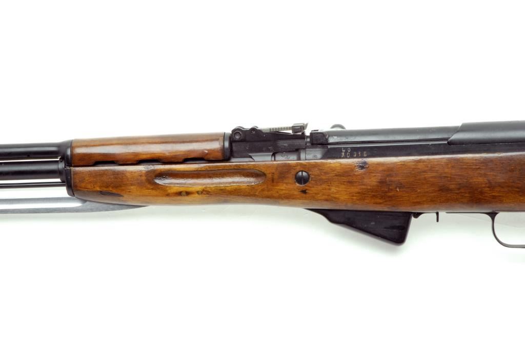 Russian SKS semi-automatic rifle, import-marked, .7.62 x 39mm caliber, 20” barrel, S/N 0916, black finish, folding bayonet, wood stock in overall very good condition showing the majority of its military finish, very good to fine bore, crispaction, very good wood stock. (Modern). Est.: $300-$600.