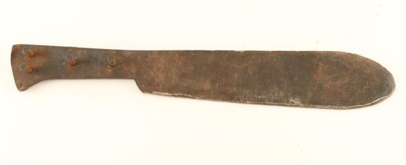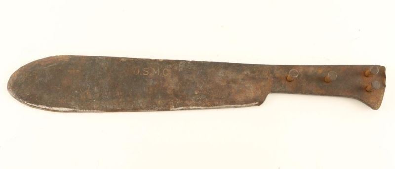 Missing handle, blade marked 'USMC', measures 16 1/2" overall with 11" blade.
