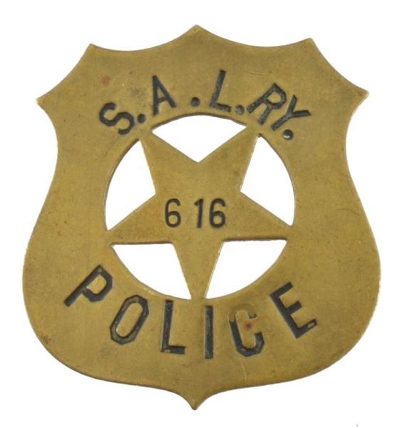Possibly the San Antonio Laredo Railway Police. "1356" Engraved on back.