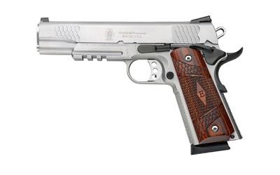 Smith & Wesson, 1911 TA, E Series, Single Action, 45ACP, 5" Barrel, Stainless Frame, Stainless Finish, Wooden Laminate E-Series Grips, Night Sights, 8Rd, 2 Magazines, Tac Rail