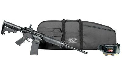 Smith & Wesson, M& P 15, Sport II, AR-15, Semi-Automatic, 556NATO, 16" Barrel, Black Finish, Flip Up Rear Sight, 6 Position Black Collapsible Stock, 1 Mag, 30Rd, Promo Kit including Duty Series Gun Case, Caldwell Mag Charger TAC-30