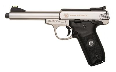 Smith & Wesson, Victory, Semi-automatic Pistol, 22LR, 5.5" Threaded Barrel, Steel Frame, Stainless Finish, Polymer Grip, Adjustable Rear, Fiber Optic Front Sight, 10 Rd, 2 Magazines