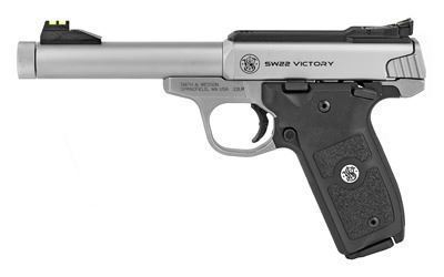 Smith & Wesson, SW22 Victory, Single Action Only, Semi-automatic, Metal Frame Pistol, 22LR, 5.5" Threaded Barrel, Stainless Steel, Polymer Grip, Fiber Optic Front Sight, Manual Thumb Safety, Adjustable Rear Sight, 10 Rounds, 2 Magazines