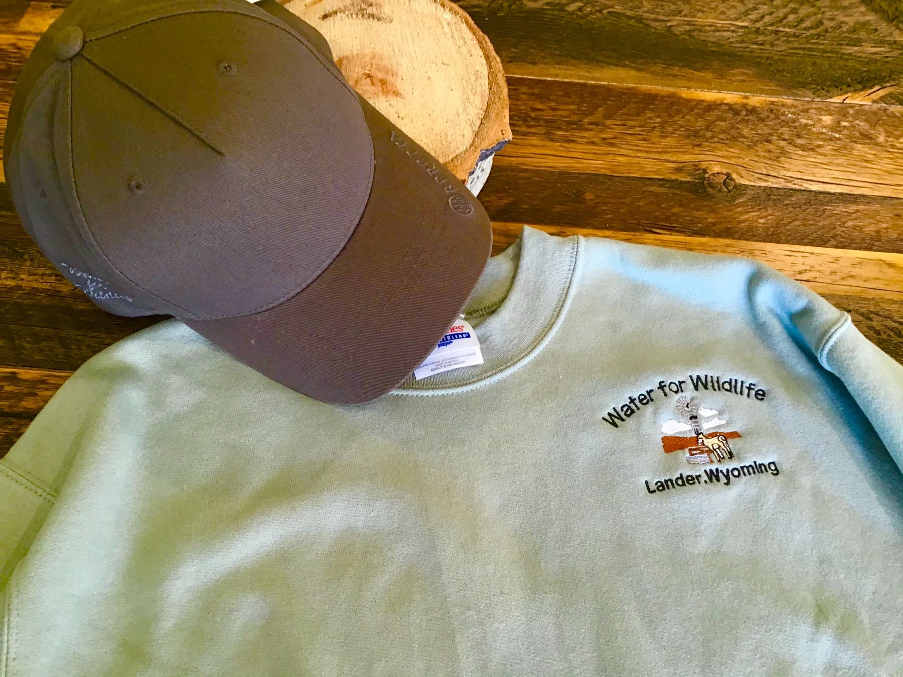 Perfect sweatshirt from Jerzees Activewear featuring NuBlend-50% cotton/50% poly. Water for Wildlife Antelope Monogram. Size 3x in Sage Green.