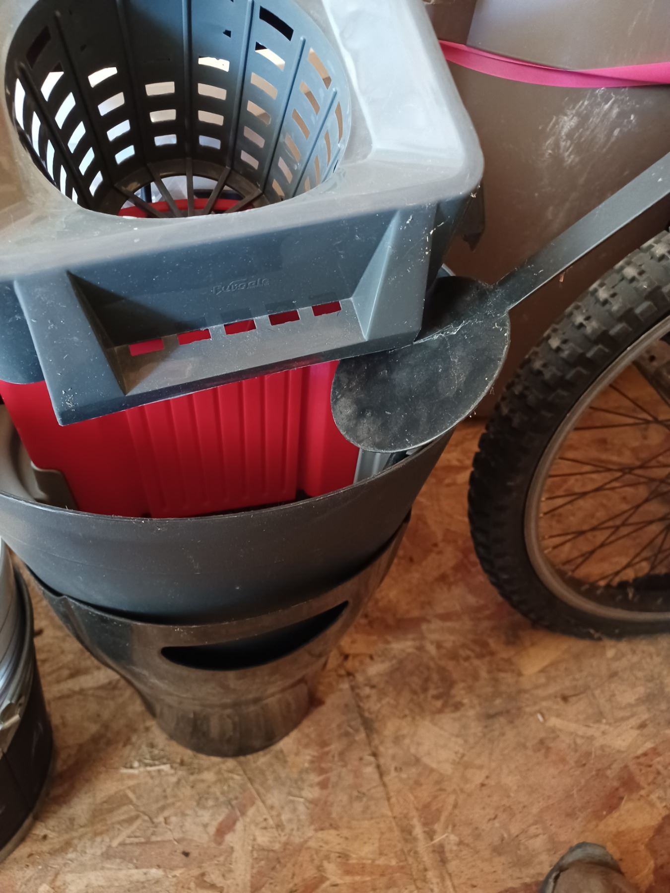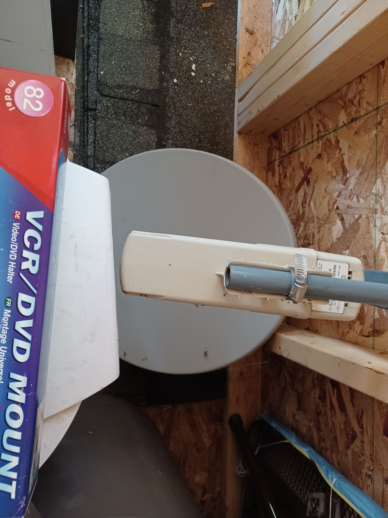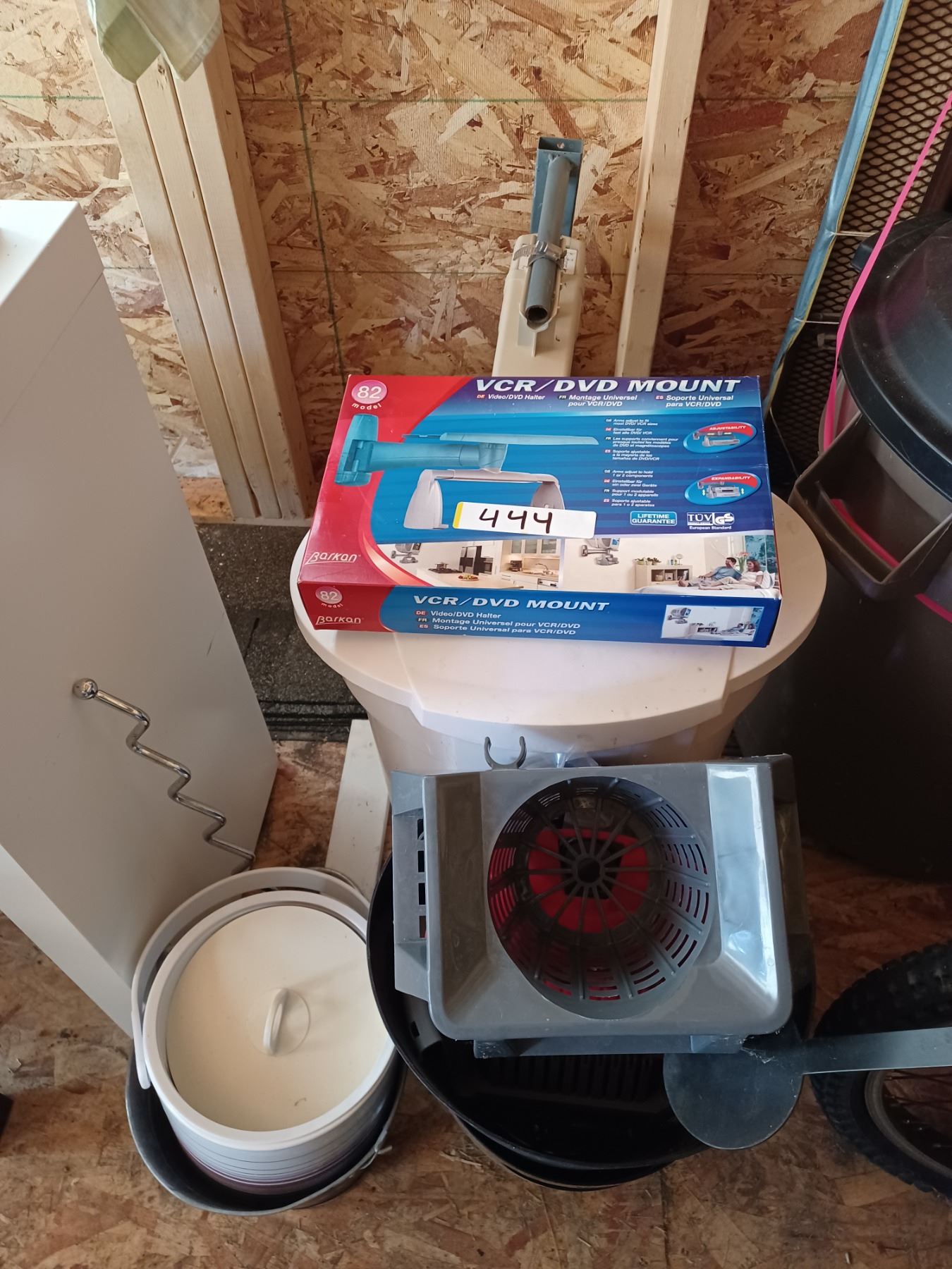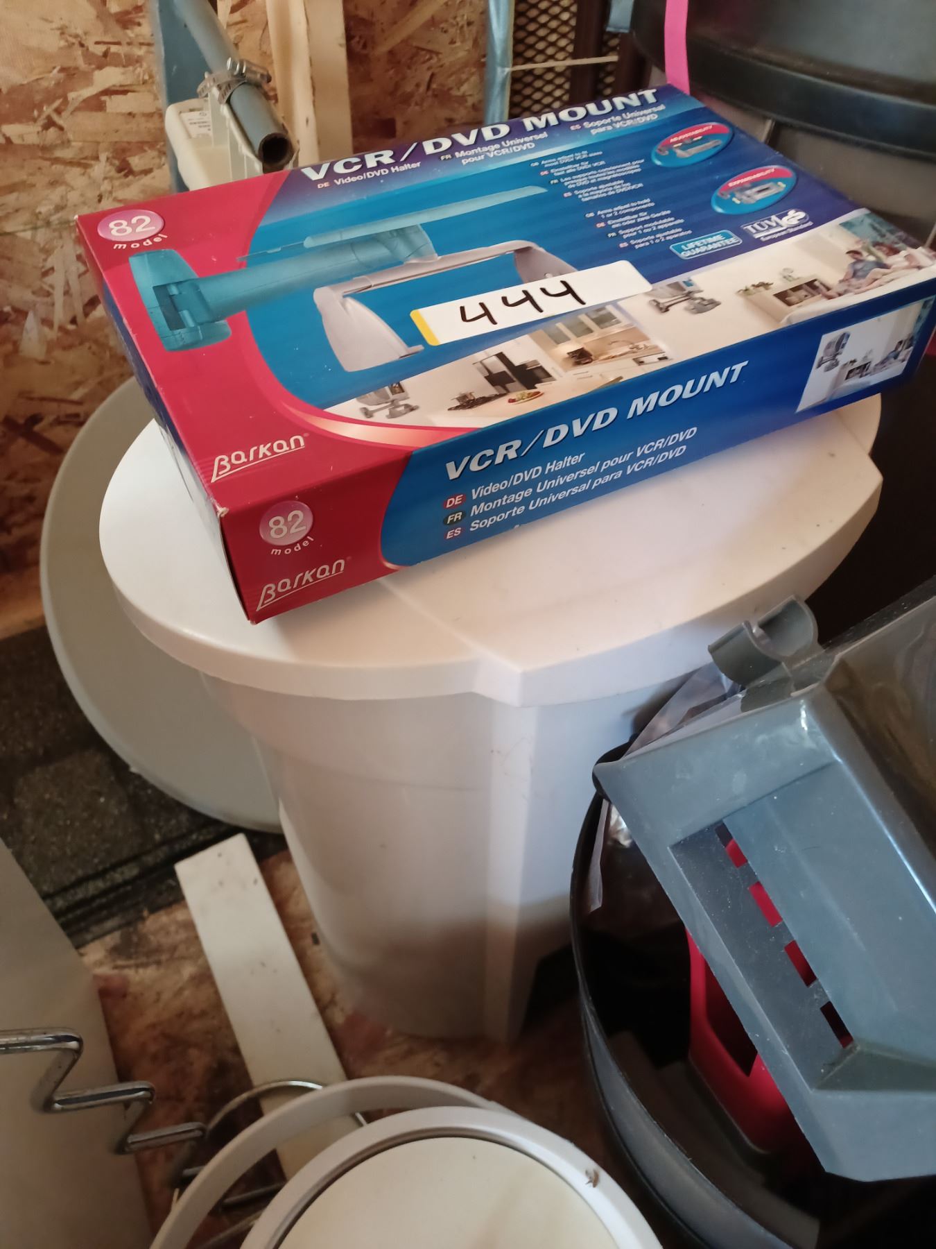 SATELITTE DISH, GARBAGE CANS, BUCKET; VCR/DVD WALL MOUNT