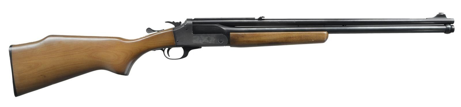 Cal. .30-30 W.C.F. / 20 GA. S# E942675. Bbl 24". Left side of barrels are marked with the model and caliber designations, with the right side bearing Savage's manufacturer information. Sides of frame bears small lightly engraved game scenes. Metal components are blued, with the stock and forend being comprised of smooth wood. Trigger guard is comprised of black plastic. Ramp blade front sight with flip up U-notch rear sight. CONDITION: metal components retain the majority of their original factory blue finish, exhibiting some light wear, a few minor superficial handling marks, as well as light surface oxidation that is present on the receiver. Mirror bores, with the rifle barrel retaining strong rifling throughout. Wood furniture shows a couple minor handling marks, but is otherwise good. (23-2310/MLW). MODERN. $300-500.