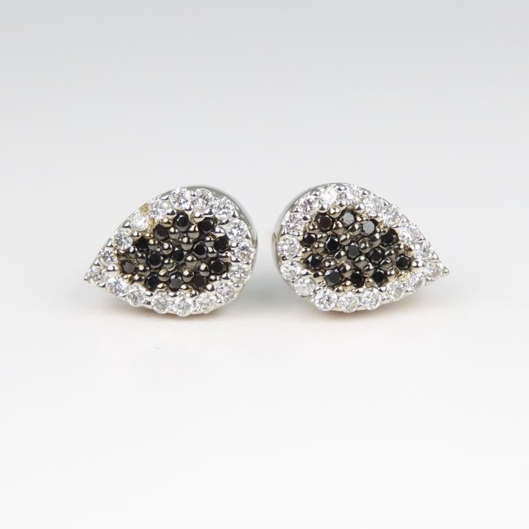 Made in Italy featuring 64 round pave set White and Black Diamonds weighing approx. 1.00 carat combined crafted in 18 karat white gold.