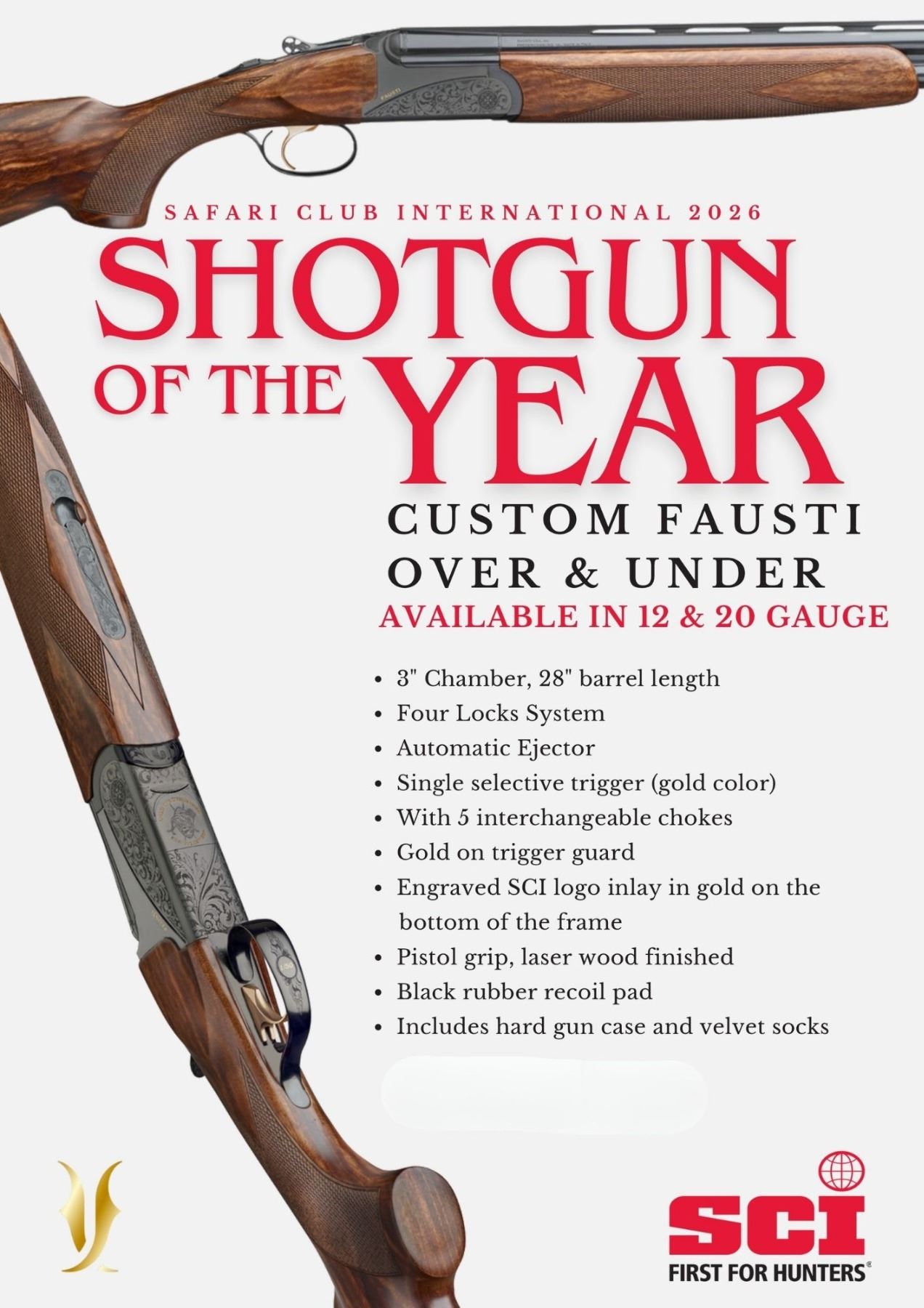 This lot presents a rare opportunity to acquire a matched pair of 2026 SCI Fausti Over/Under shotguns in both 12 gauge and 20 gauge. Built with premium features and distinctive SCI detailing, these shotguns are the kind of collector and presentation firearms that immediately stand out in any auction lineup. As a matched set, they offer both visual appeal and strong value for bidders who appreciate fine firearms with commemorative significance.