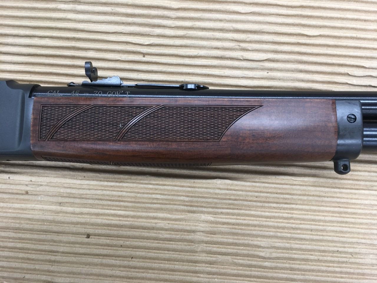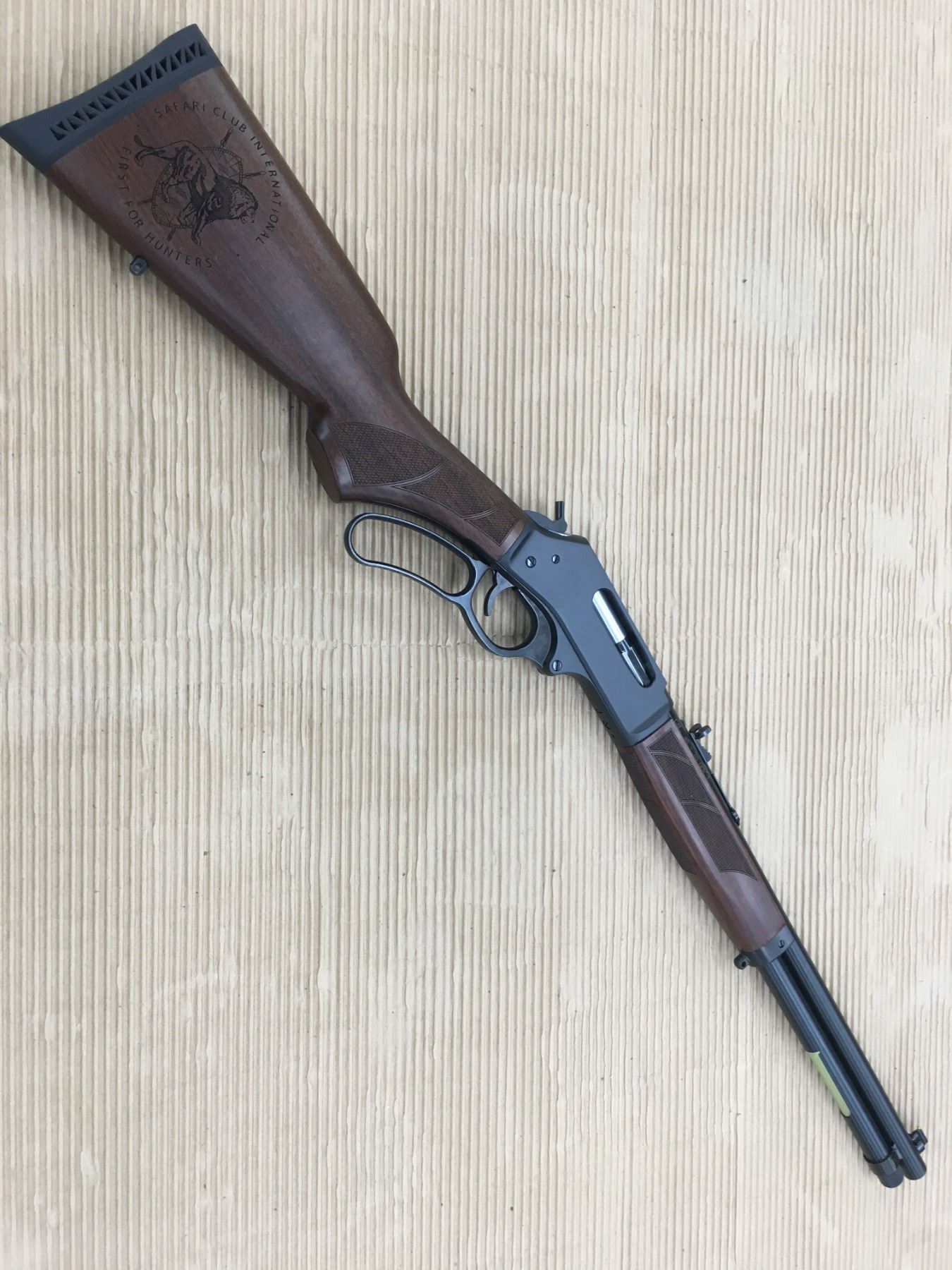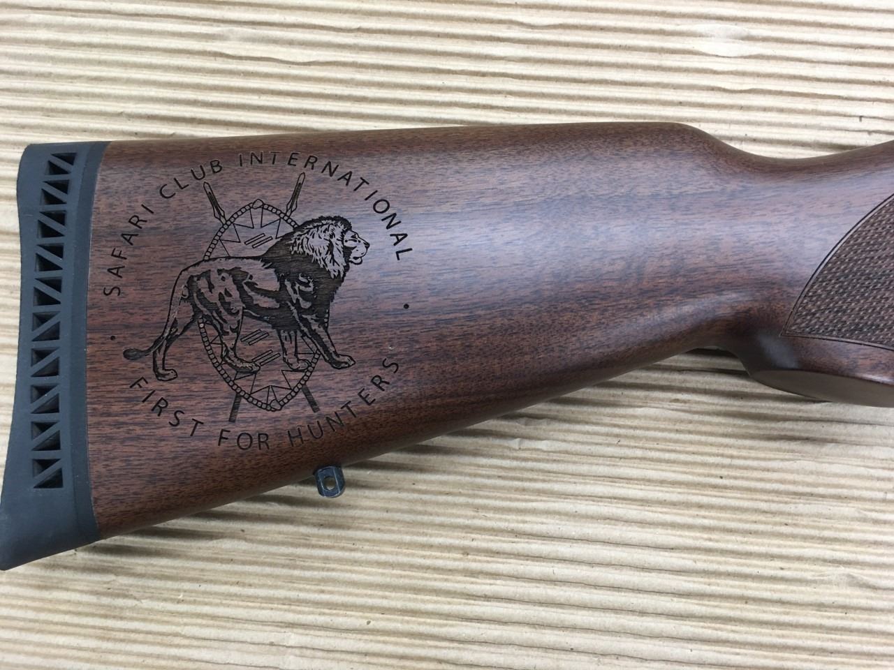 This rifle’s caliber, .45-70, traces its origins from the battlefield to its modern-day presence in hunting camps across the country, and it’s capable of handling even the largest game in North America. The receiver is blued steel fitted with an 18.43″ round barrel and a tubular magazine of four-round capacity. Its pistol-grip buttstock and steel-capped forend are crafted of beautiful American walnut and cut with checkering to provide a sure grip. This rifle is the only one that proudly displays a laser-engraved SCI logo - we had it exclusively engraved for this auction - and it wears a soft rubber pad to help shooters handle .45-70 recoil from a 7 lb. rifle. It has a fully adjustable semi-buckhorn rear sight with a brass beaded front sight. Because the receiver is drilled and tapped, scope mounting is an easy option. If you need a handy yet powerful lever gun capable of fast repeat shots in the bear country of Alaska, or just a short, light rifle for deer hunting, this rifle will provide the accuracy and reliability you can count on.