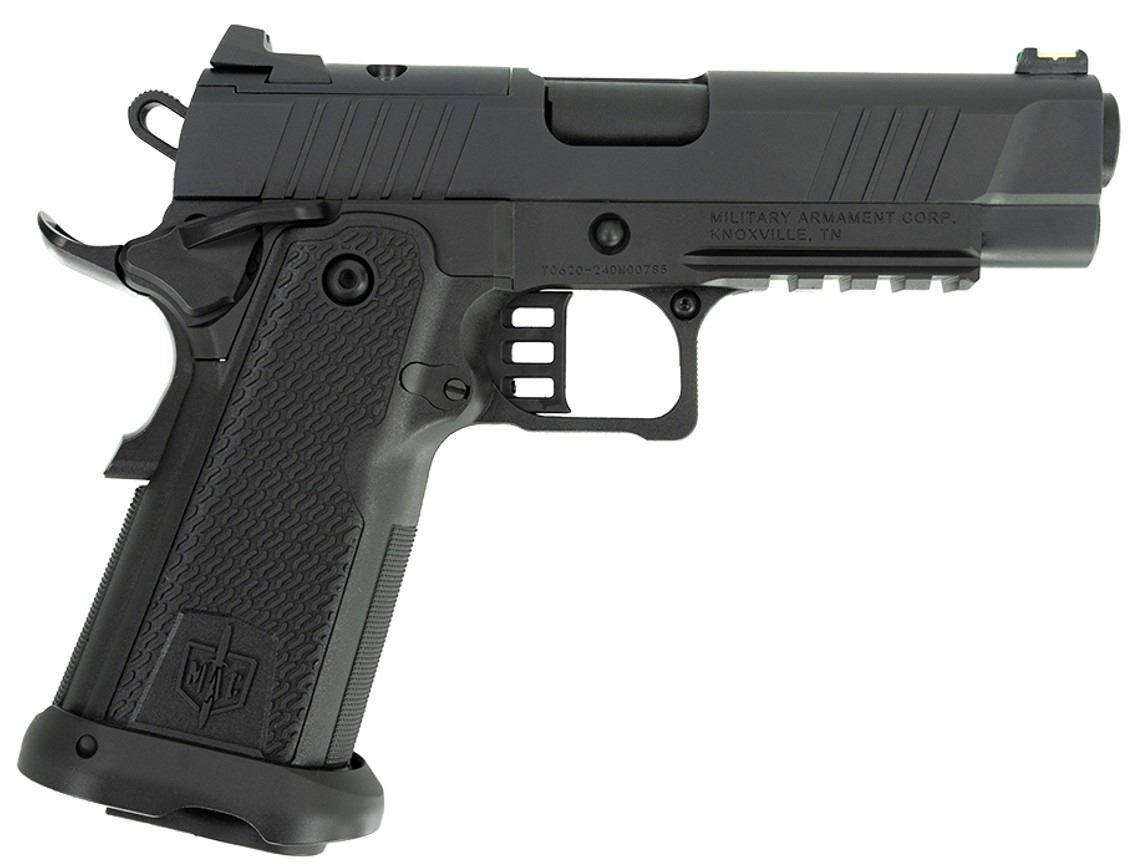 Designed by Military Armament Corporation here in Knoxville, TN and built by Tisas to our exacting standards, the MAC 1911-9 Double Stack is here! Ready for any mission with the factory RMR pattern optic cut on the slide and M1913 light rail on the frame. The polymer grip module is molded polymer with subtle but grippy texture, 25LPI checkering on the front/rear and has an aluminum removable magazine well. Chambered in 9MM with a 4.25" bull barrel that is QPQ Tennifer finished with a 11º target crown is sure keep recoil to a minimum and accuracy at it's best.