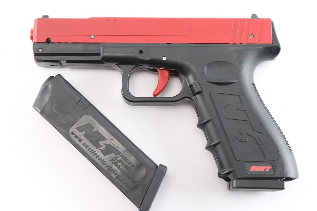 Shot Indicating Resetting Trigger (SIRT) Training Pistol was developed by shooters for shooters, to complement, not replace, live fire training. Model 110 was developed to replicate the Glock 17/22. Has similar weight and feel with a metal slide and polymer frame. Can switch from regular factory sights to red dot laser sight. Includes two realistic magazines. In very good condition.