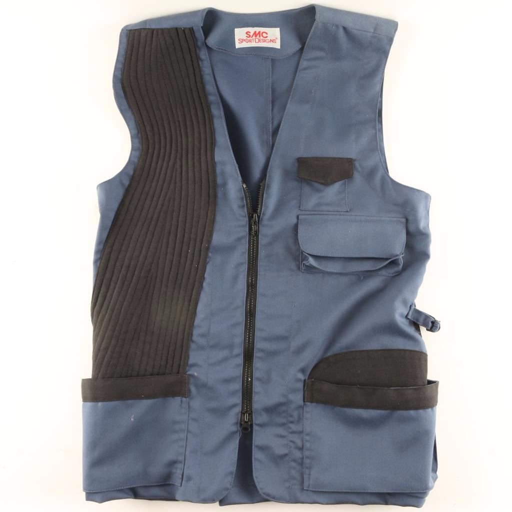 Blue fabric accented with black. Has reinforced shoulder patch and 3 pockets. Size Medium. In good condition