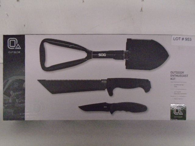 As is – Shovel, Machete, Knife, Shovel lightly used, other items new.