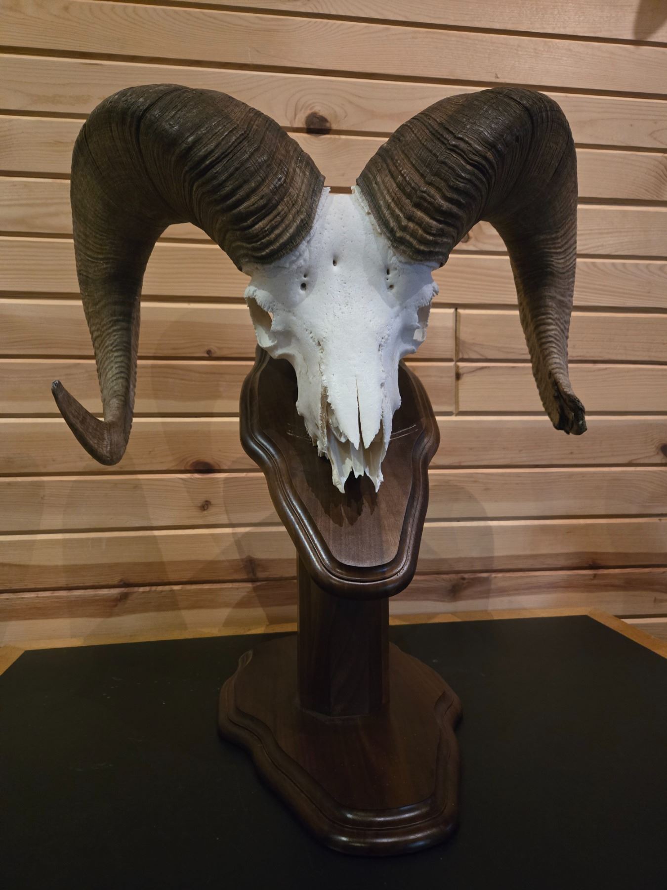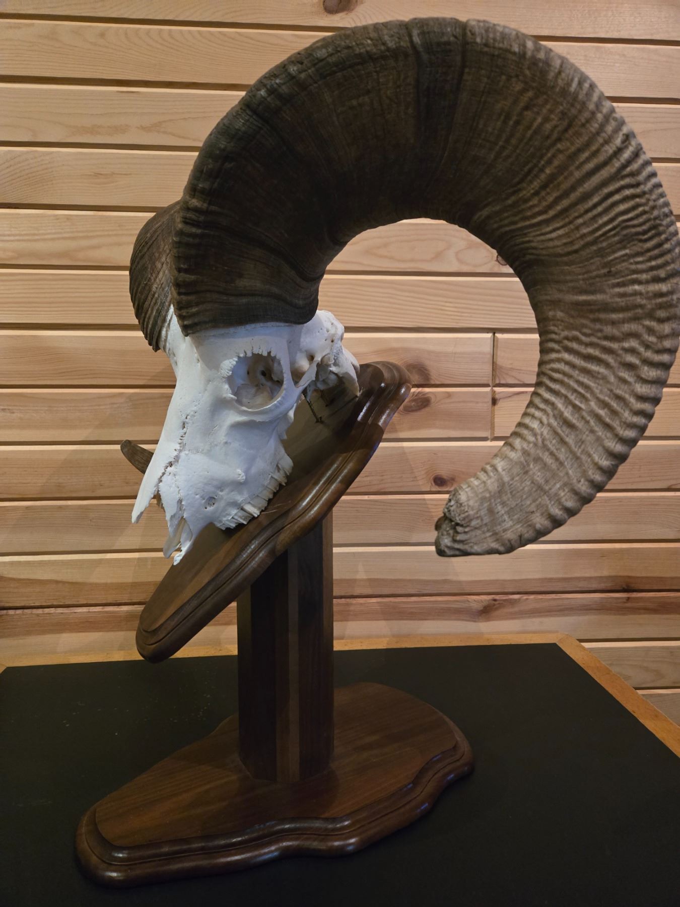 Board members Greg Schultz and Kyle Nakamoto have developed a great relationship with the South Dakota Fish, Game and Parks and their Terrestrial Section Chief, John Kanta. Board members Kyle, Greg, John and Jason recently met with John to continue our relationship with South Dakota and visit the new shooting complex which Iowa FNAWS donated funding to. At this trip, John was gracious enough to donate this skull of a one of their bighorns from the Black Hills of South Dakota. This beautiful ram scores 166 2/8". Iowa FNAWS looks to continue to build on this relationship and assist South Dakota with their efforts. Buyer responsible for all crating and shipping costs.