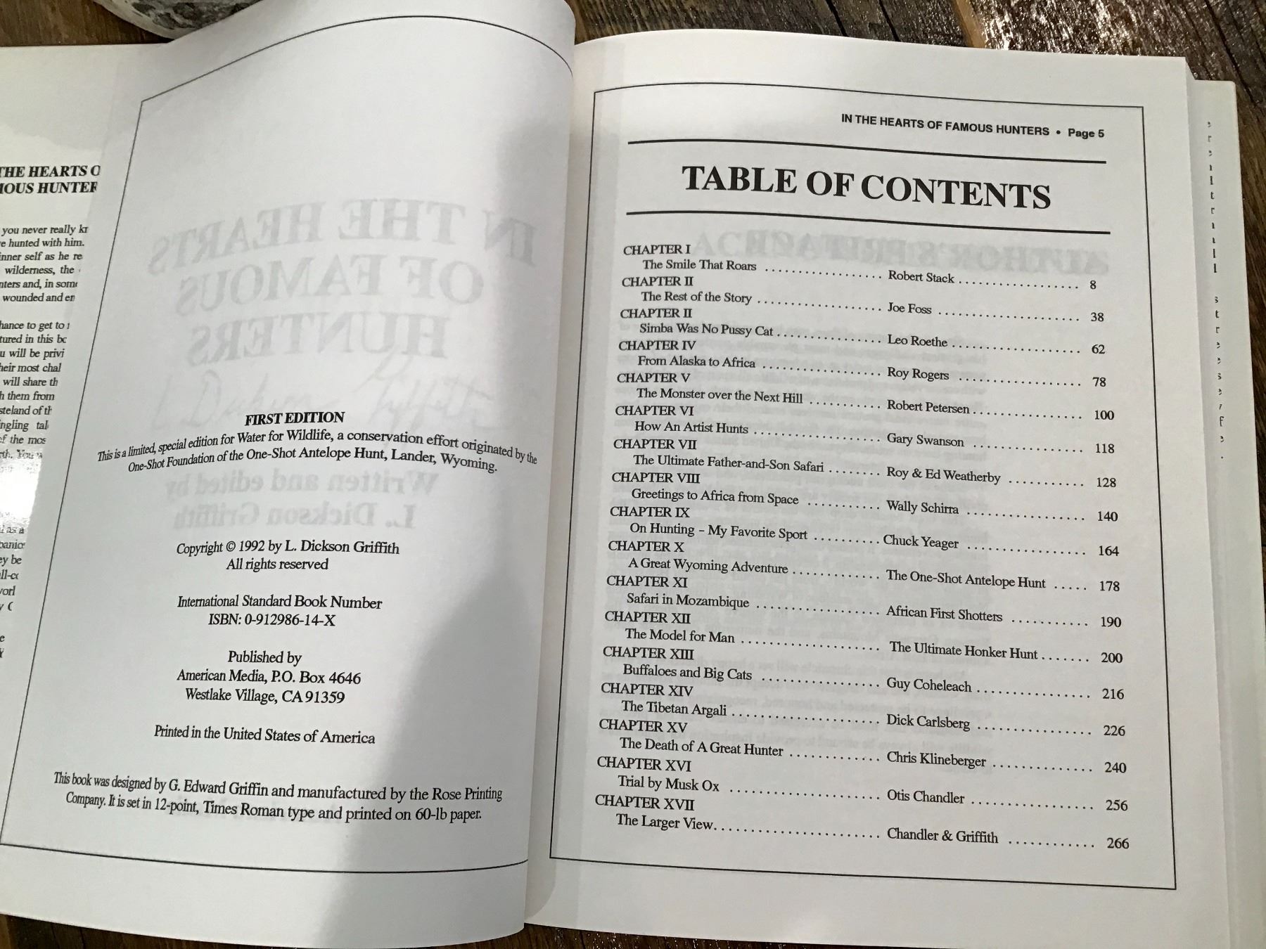 SPECIAL EDITION "IN THE HEARTS OF FAMOUS HUNTERS" SIGNED BY AUTHOR L. DICKSON GRIFFITH
