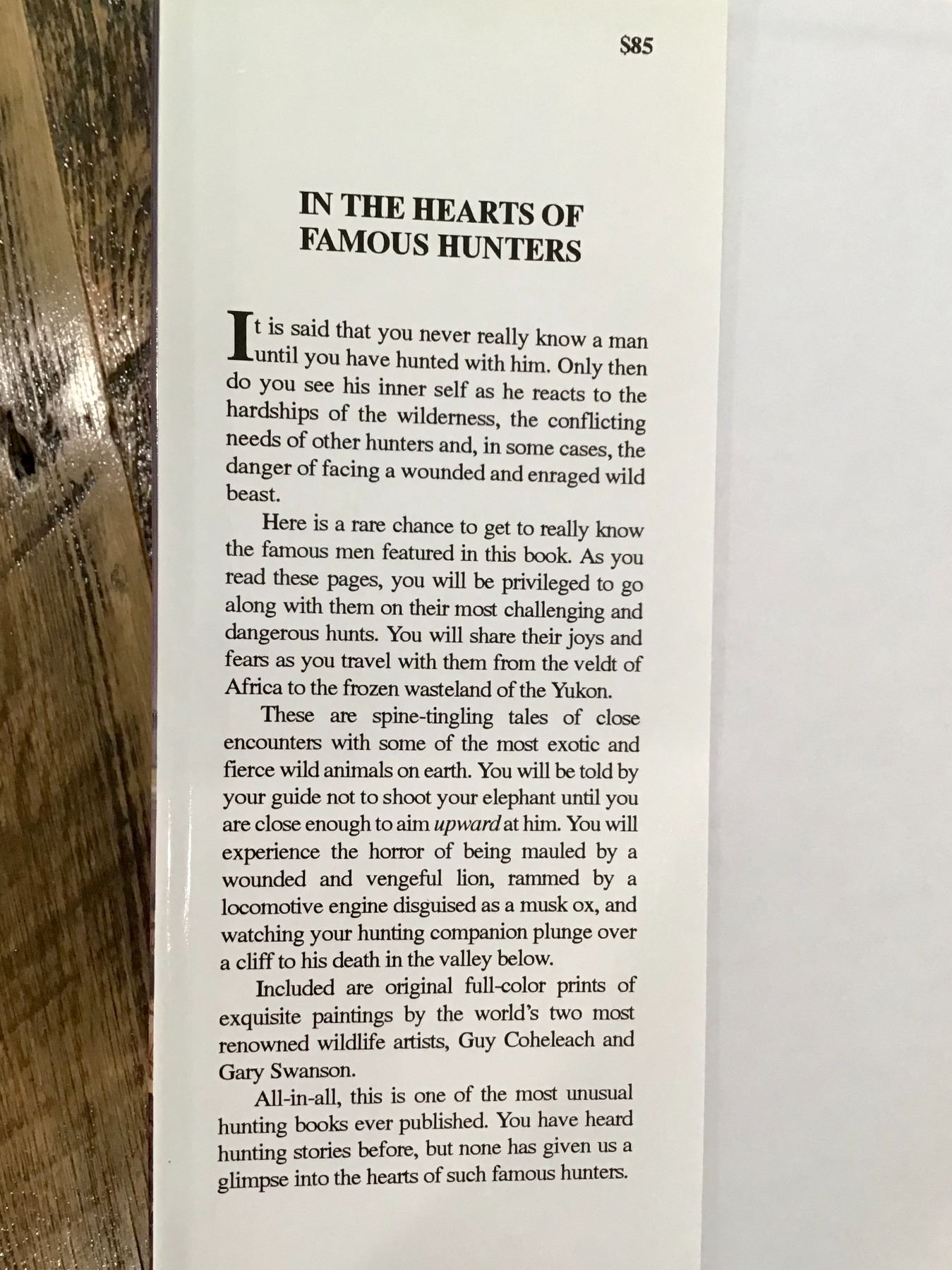 Beautiful coffee table book or addition to any hunter's library. Foreword- "It is said that you never really know a man until you have hunted with him. Here is a rare chance to get to really know the famous men featured in this book. All-in-all, this is one of the most unusual hunting books ever published. You have heard hunting stories before, but none has given us a glimpse into the hearts of such famous hunters."