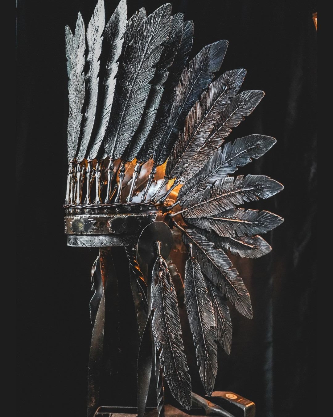 Another beautiful piece by artist Jen Loree! Life-size, hand-forged, and welded original steel headdress “Spirit of the Plains”.