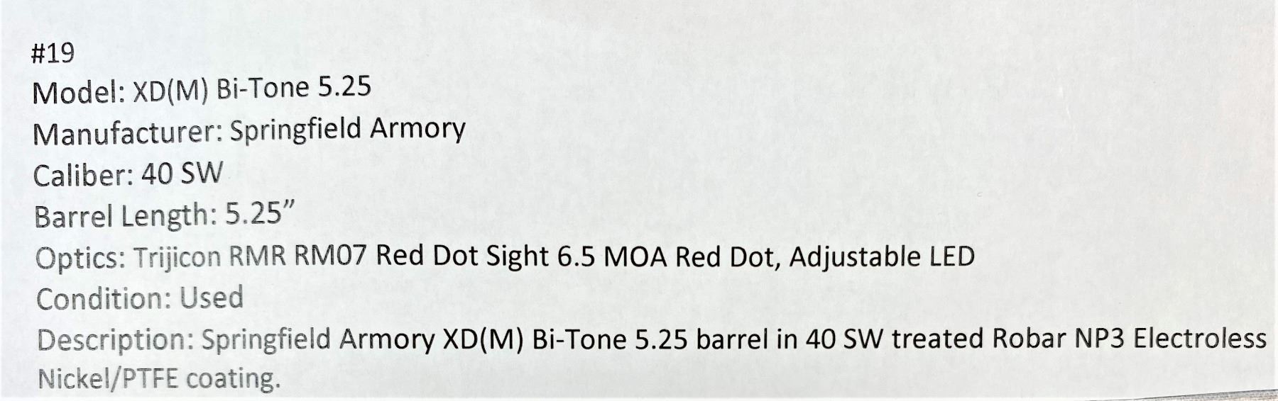 INCLUDED: Springfield Armory XD(M) Bi-Tone 5.25 barrel in 40 SW $700.00