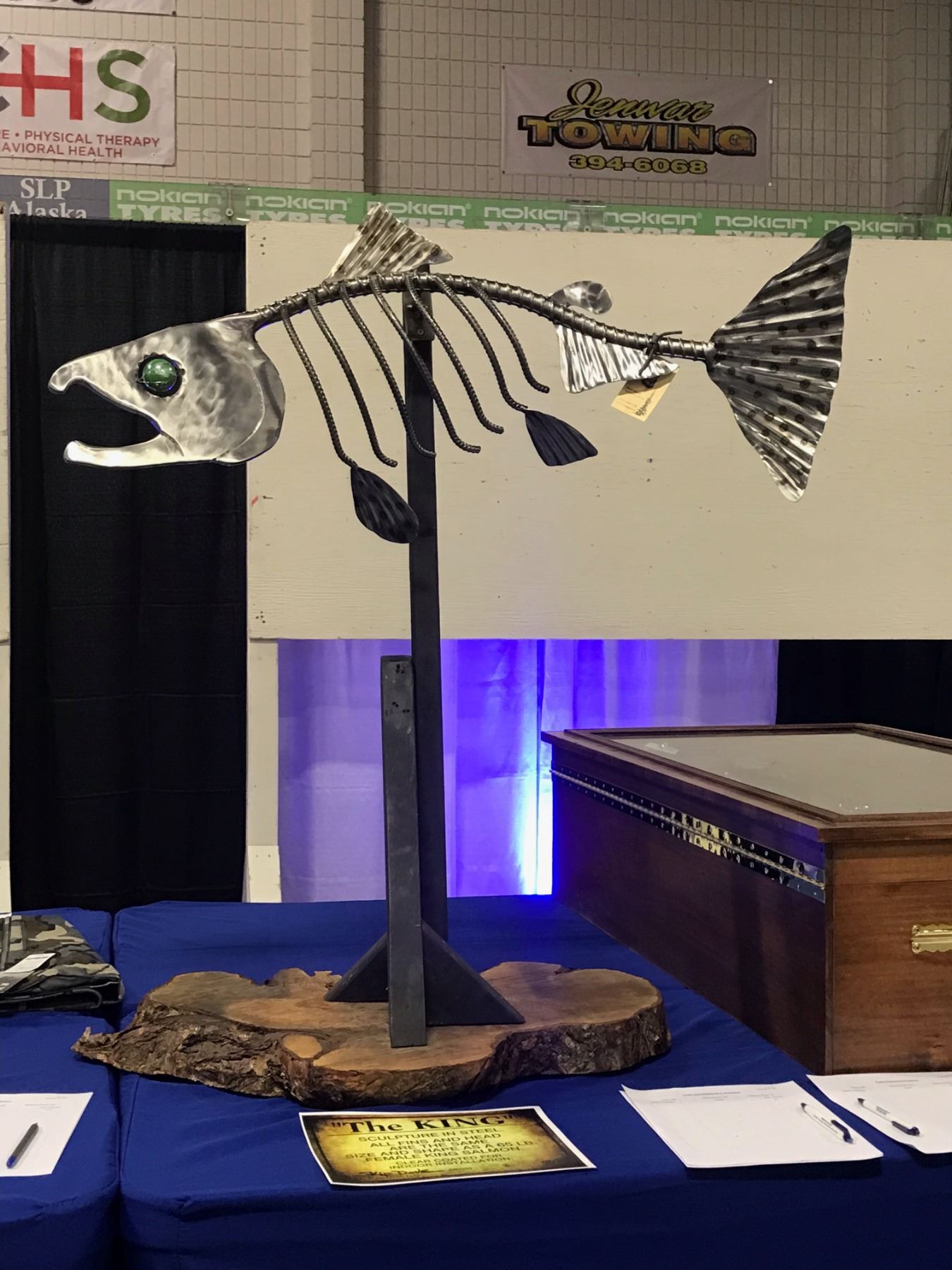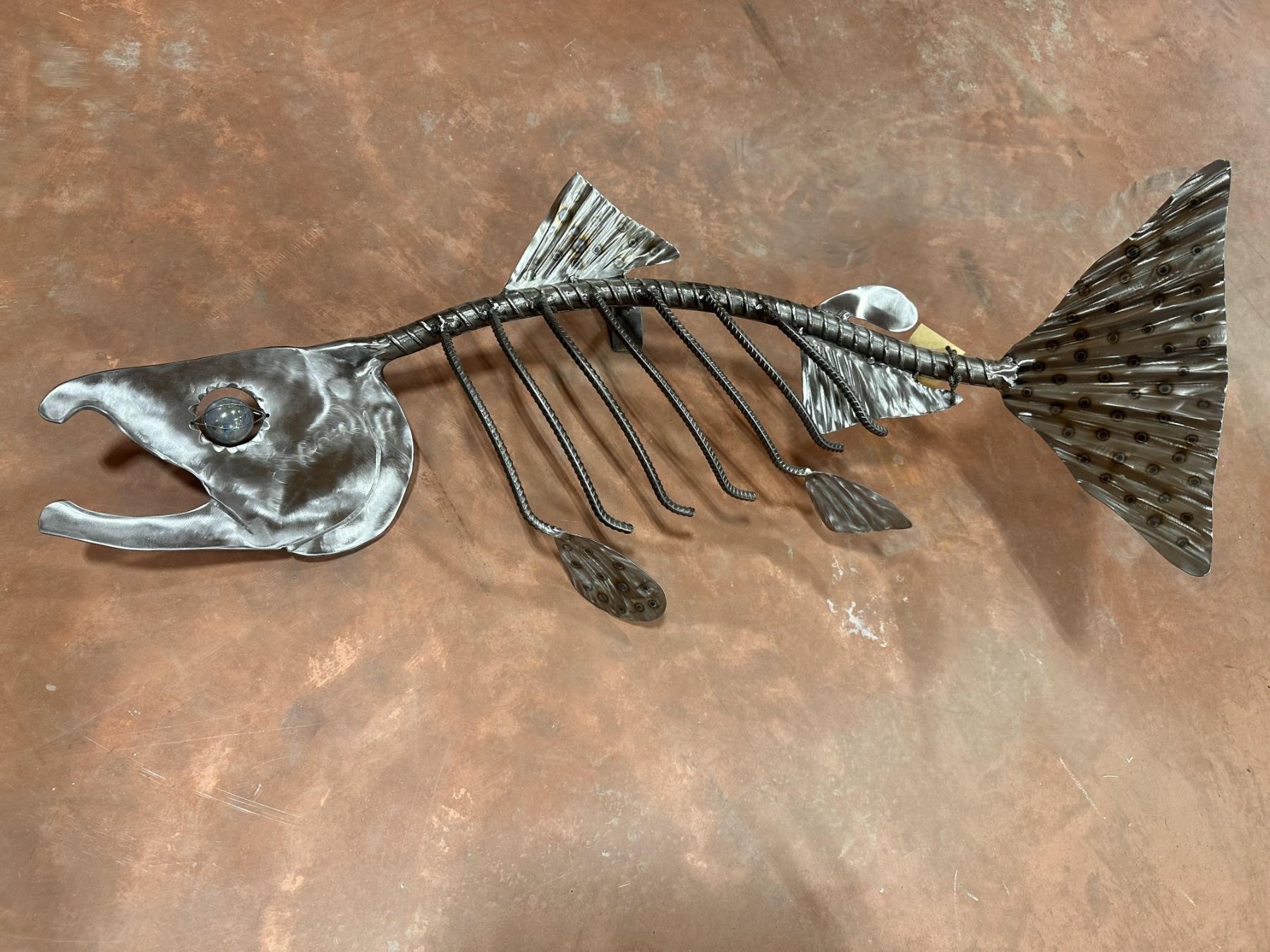 KING SALMON: Steel Sculpture-Steel Fish Sculpture- model after a 70lb Kenai River King salmon. Unique one-of-a-kind sculpture by local Artist Skip Dove. Out of State Bidders responsible for shipping.